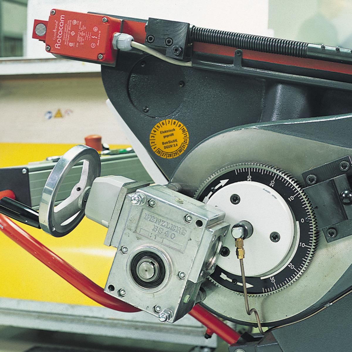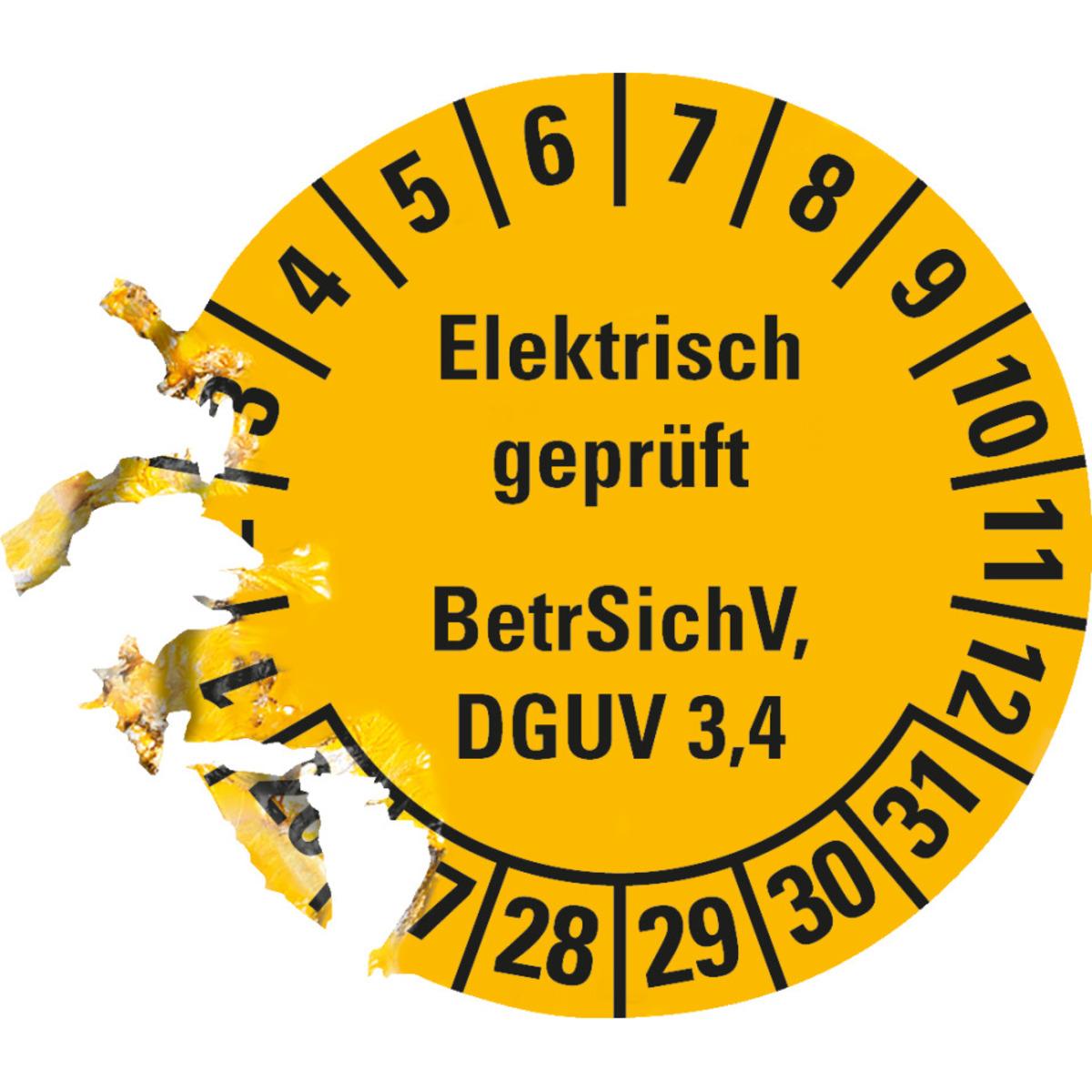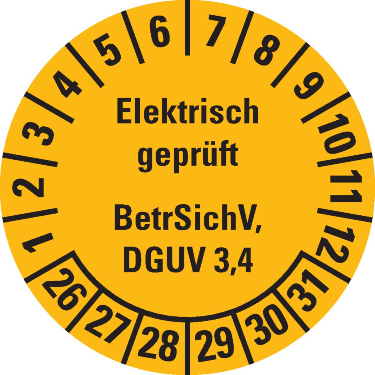 Auswahl: Prüfpl.Elektr.geprüft, BetrSichV, DGUV 3/4, 26-31, gelb, Dokufolie, Ø 30mm, 18/Bogen