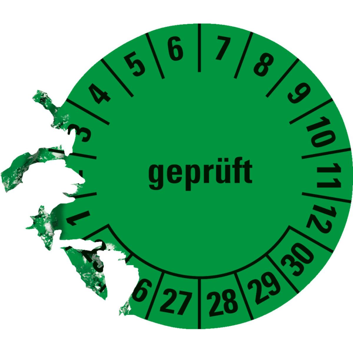 Auswahl: Prüfplakette geprüft 25-30, grün, Dokumentenfolie, selbstklebend, Ø 20mm, 500/Rolle