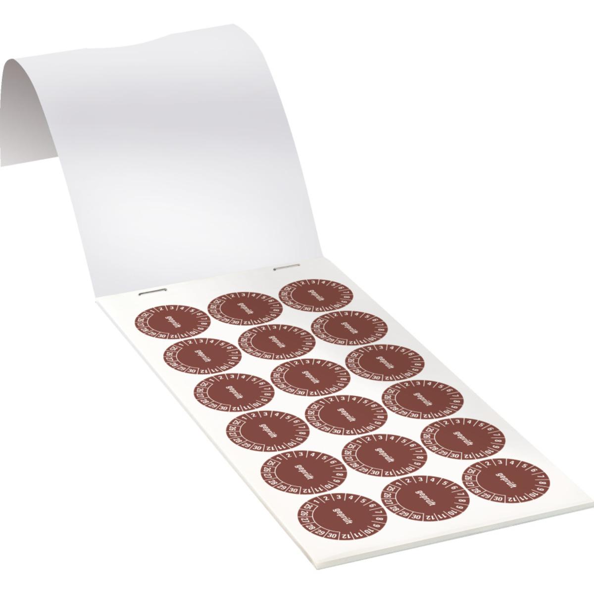 Auswahl: Prüfplakette geprüft 25-30, braun, Dokumentenfolie, selbstklebend, Ø30mm, 108/Heft