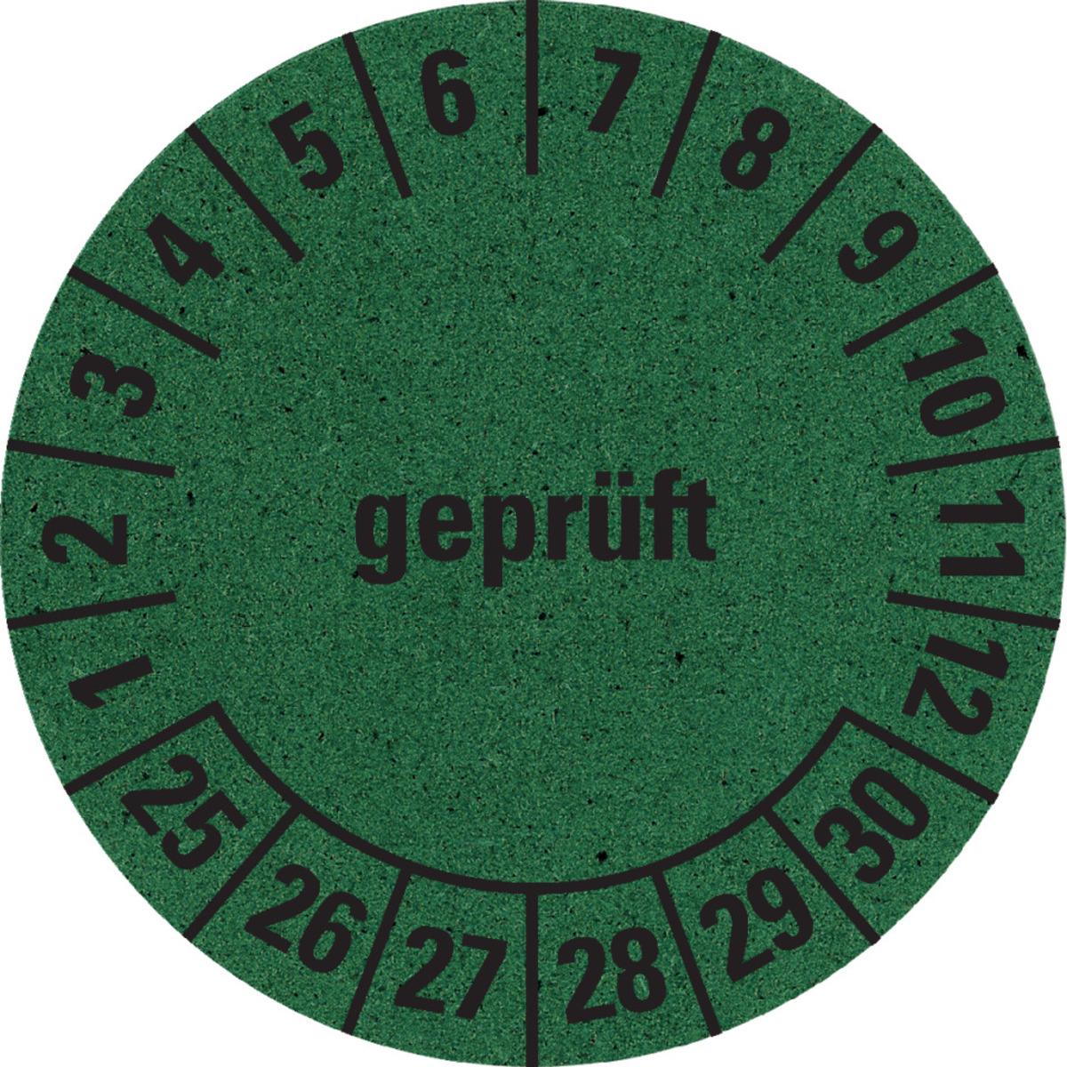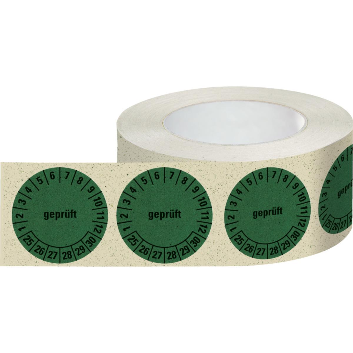 Auswahl: Prüfplakette geprüft 25-30, grün, Primärfaser-Graspapier, Ø 30mm, 500/Rolle