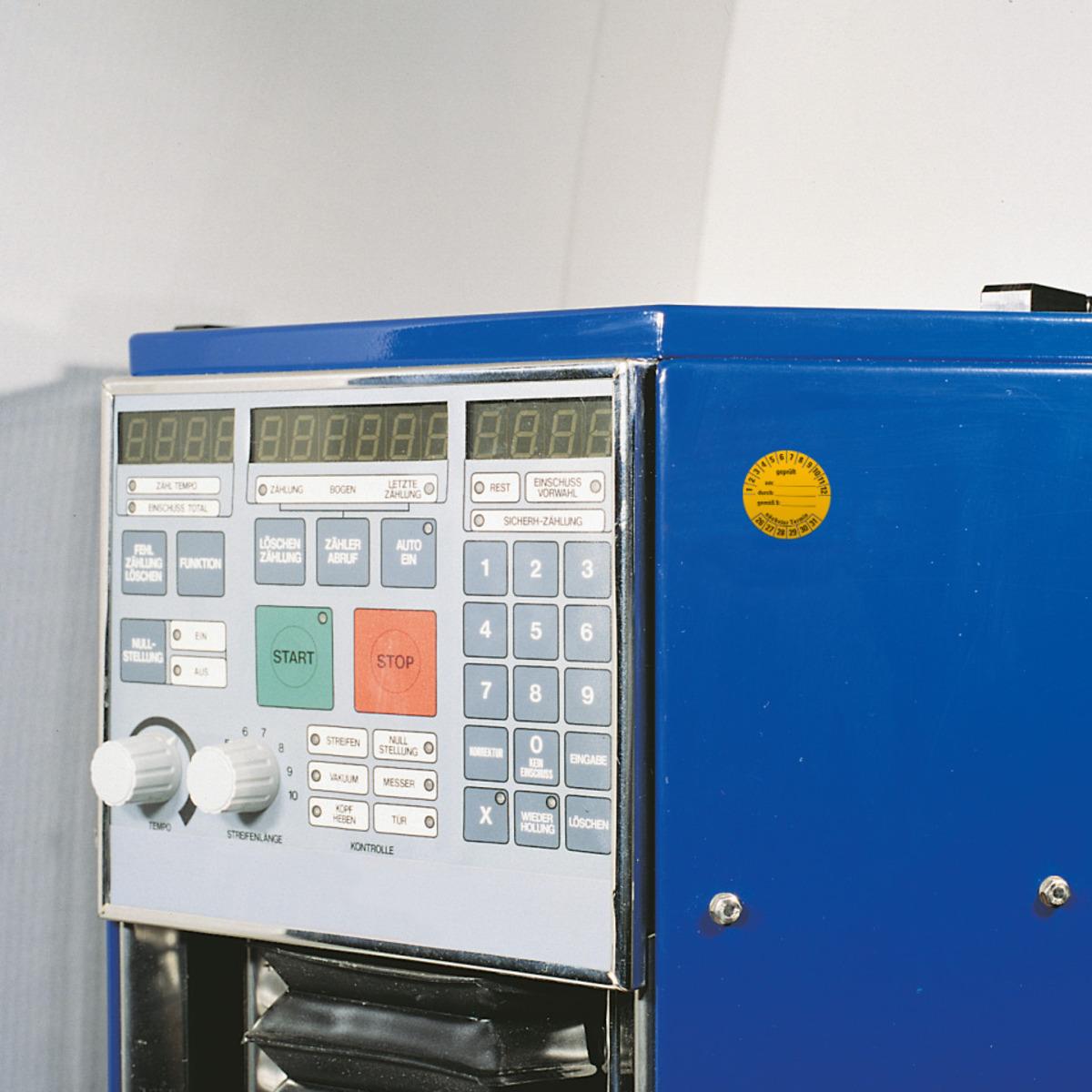 Mit der Mehrjahresprüfplakette "Geprüft - am: - durch: - gemäß §:" behalten Sie Ihre Inspektionen fest im Blick und stellen die Einhaltung der Prüffristen sicher.