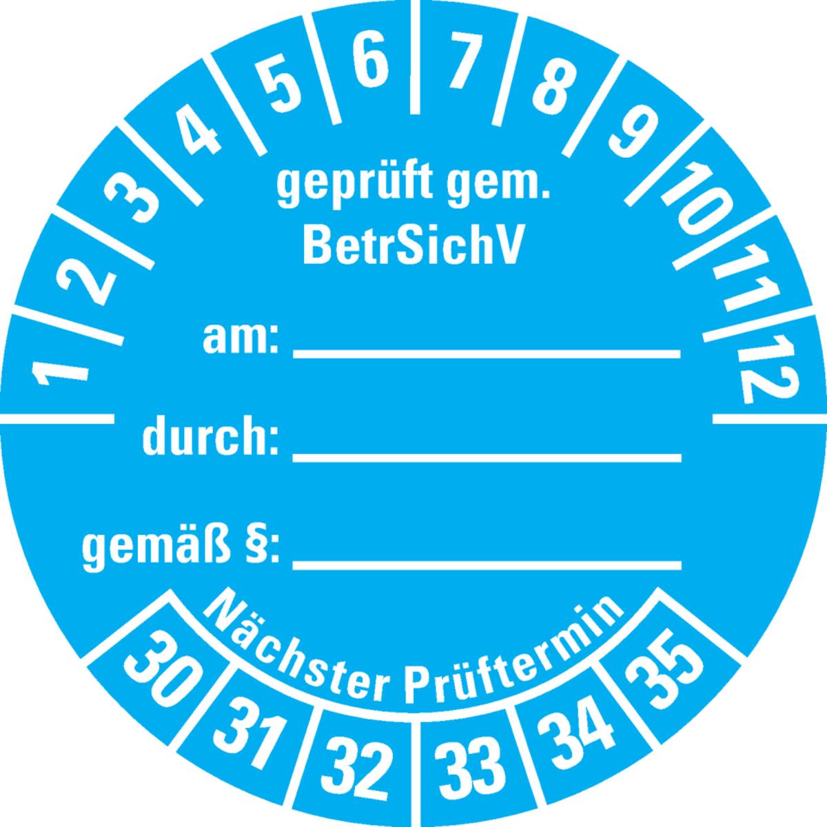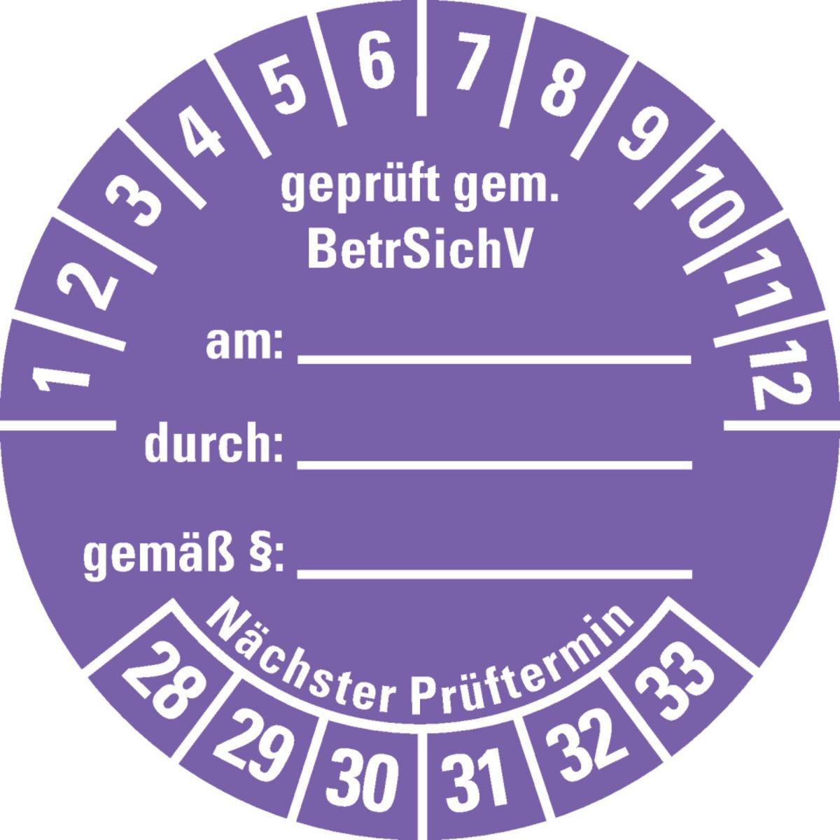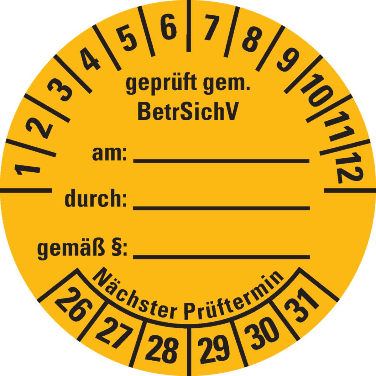 Mehrjahresprüfplakette "gem. BetrSichV" zum Selbstbeschriften
