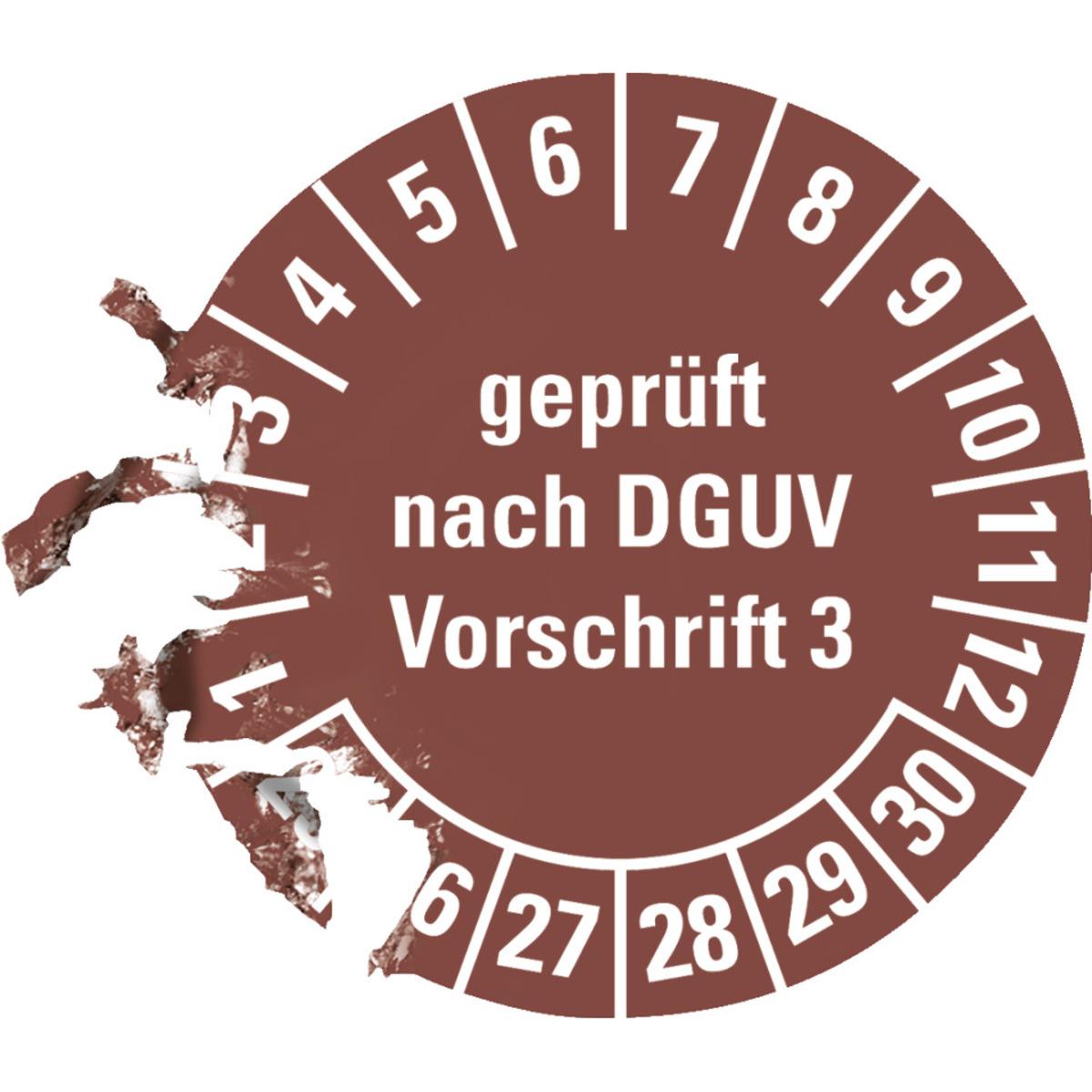 Auswahl: Prüfpl.gepr.n.DGUV Vorschrift 3 25-30, braun, Dokumentenfolie, Ø15mm, 1000/Rolle