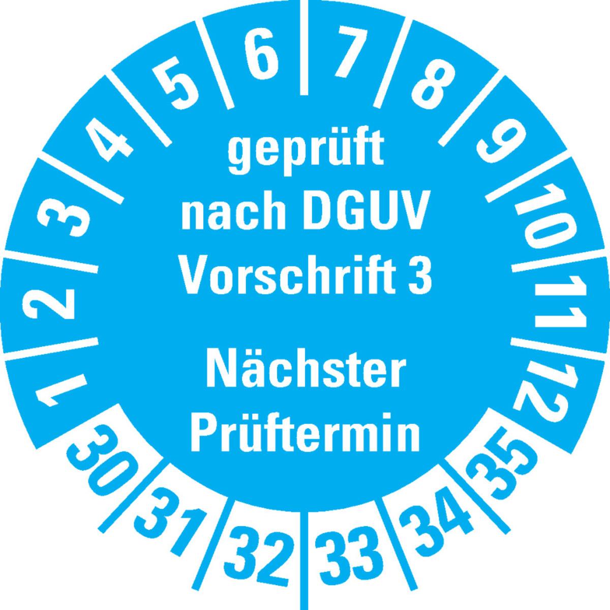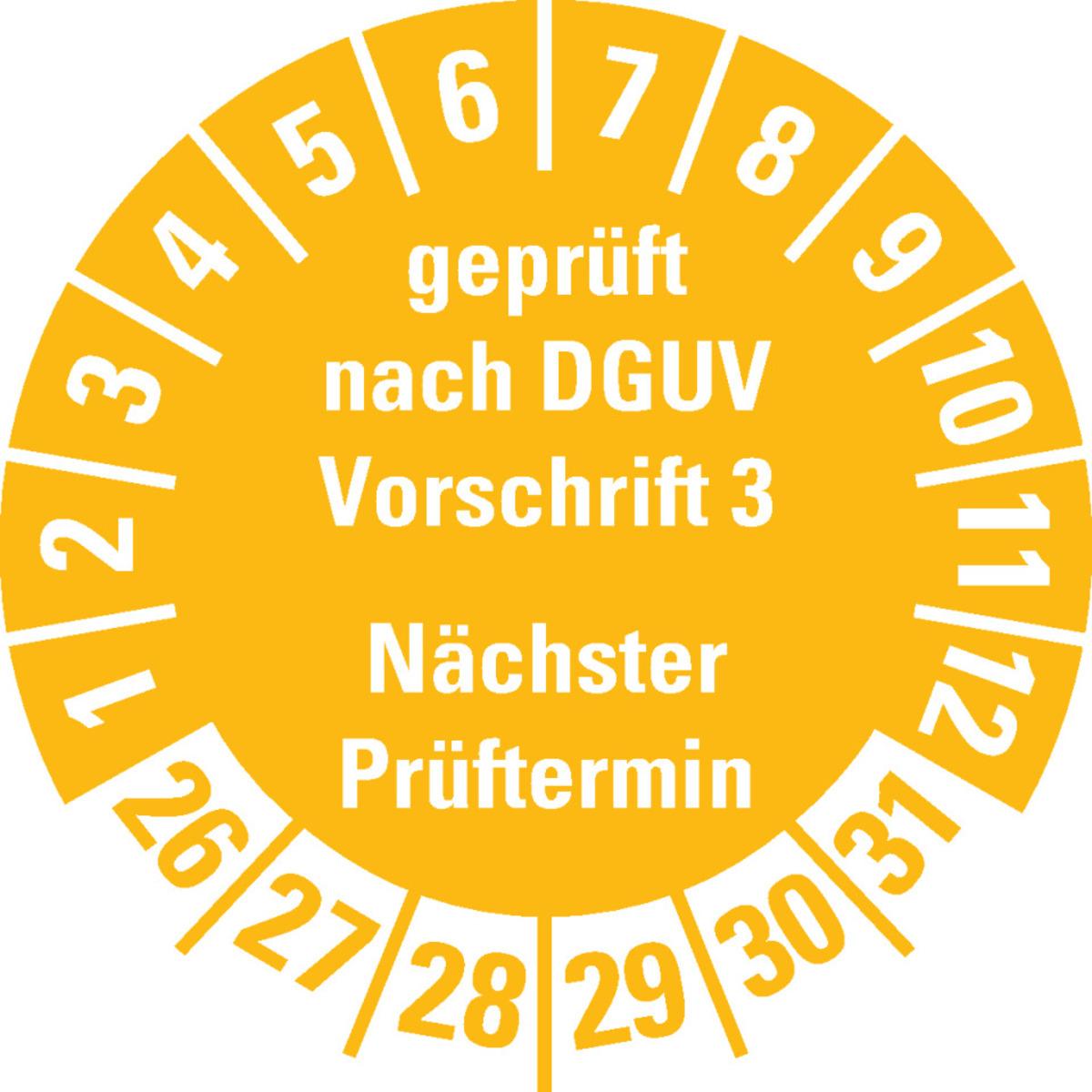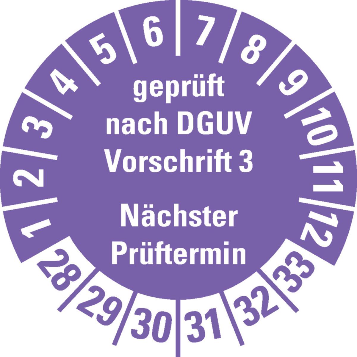 Mehrjahresprüfplakette "Geprüft nach DGUV Vorschrift 3 Nächster Prüftermin" zur Prüfung von elektrischen Anlagen und Betriebsmitteln