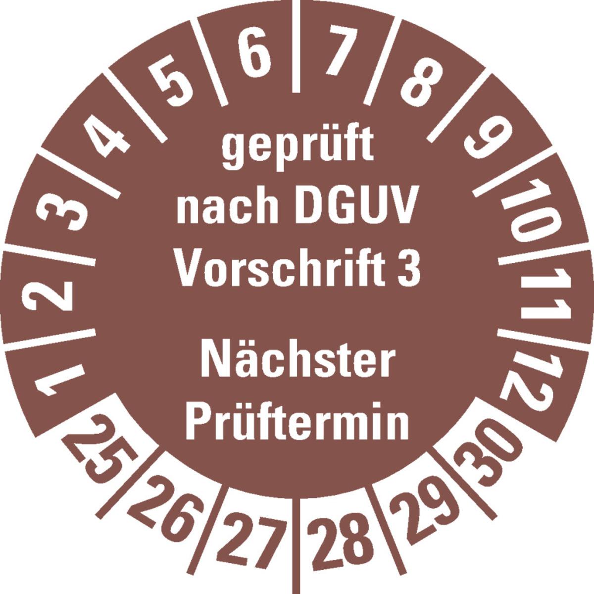 Auswahl: Prüfpl. Gepr.n. DGUV Vorschrift 3 25-30, braun, Schachbrettfolie, Ø30mm, 18/Bogen
