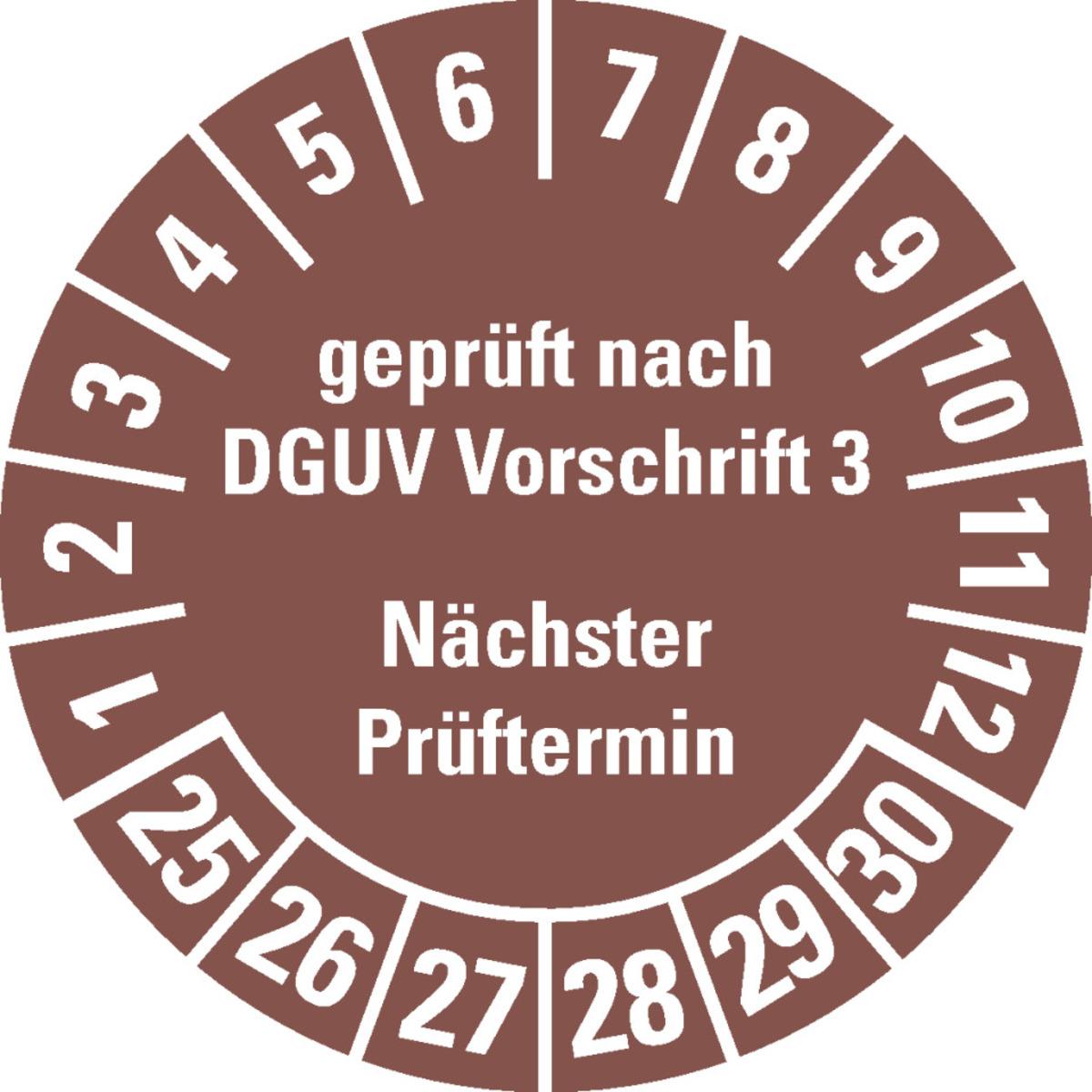 KSIGN Mehrjahresprüfplakette geprüft nach DGUV Vorschrift 3, Nächster Prüftermin Ø 35 mm ablösbare Folie Bogen