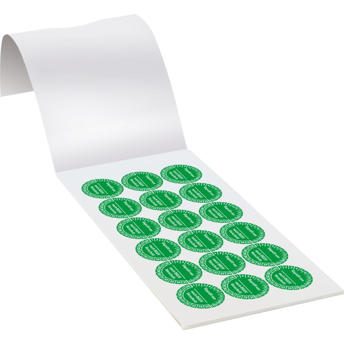 Auswahl: Prüfplakette Geprüft-DGUV Vorschrift, 26-35, grün, Dokufolie, Ø 30mm, 108/Heft