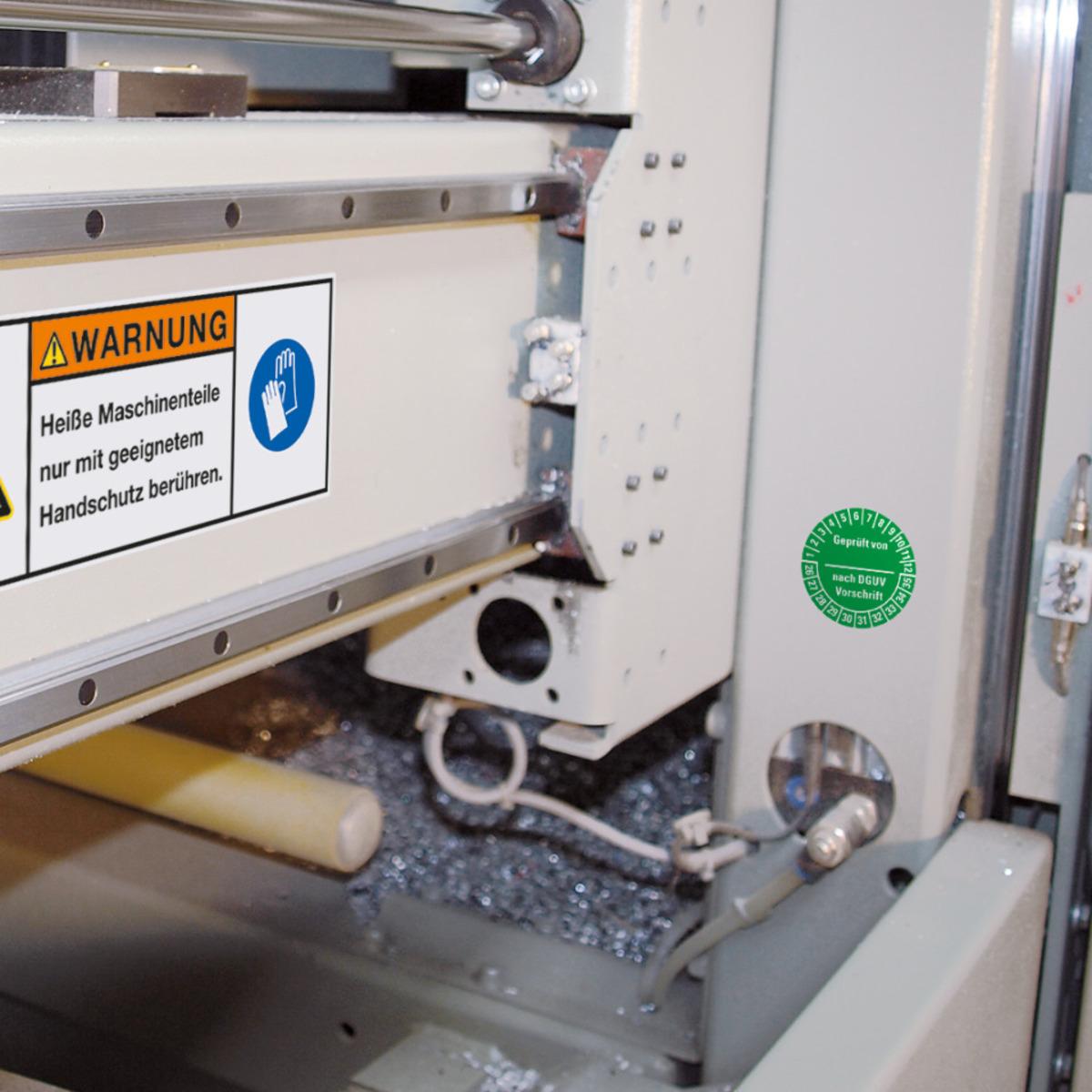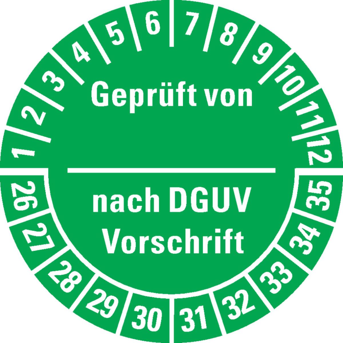 Mehrjahresprüfplakette"Geprüft nach DGUV Vorschrift" bestätigt die Prüfung nach den Vorschriften der Berufsgenossenschaften.