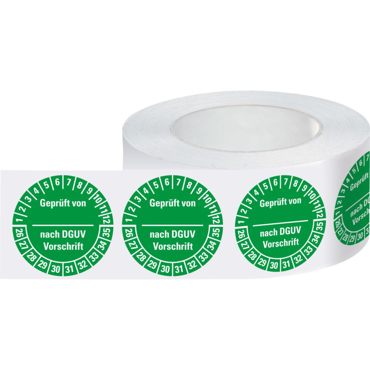 Auswahl: Prüfplakette Geprüft-DGUV Vorschrift, 26-35, grün, Dokufolie, Ø 30mm, 500/Rolle