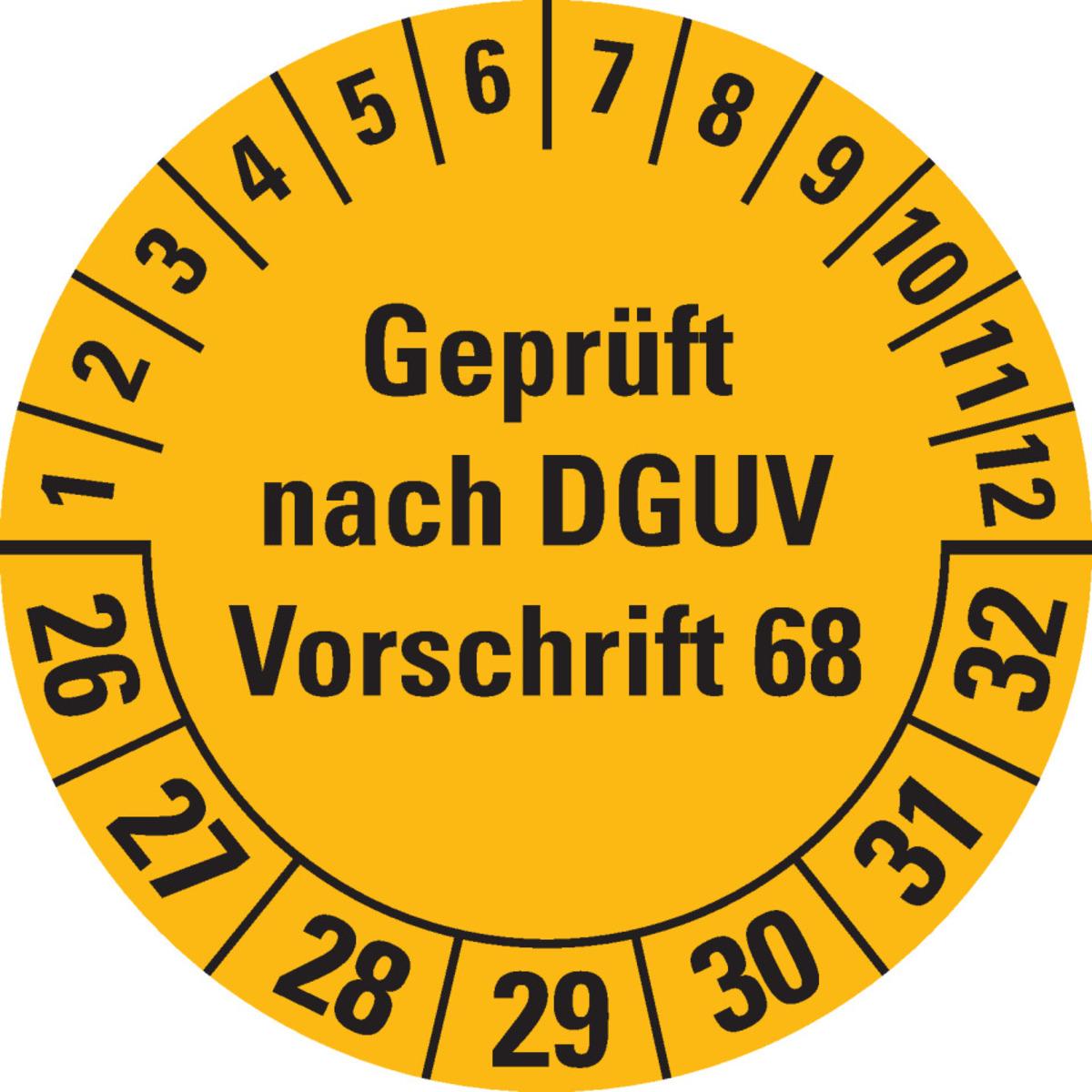 Auswahl: Prüfpl. G.n.DGUV Vorschr.68, 26-32, gelb, Folie, Oberflächensch., Ø 40mm, 10/BOG