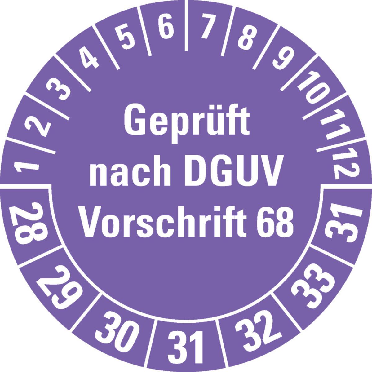 KSIGN Mehrjahresprüfplakette Geprüft nach DGUV Vorschrift 68 Ø 40 mm Hochleistungsfolie Bogen