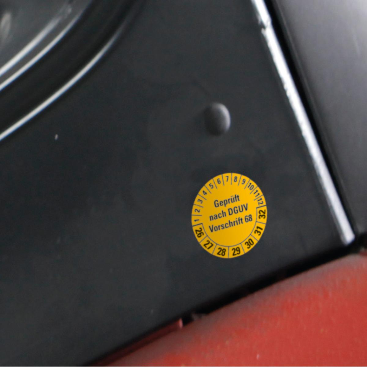 Mehrjahresprüfplakette "Geprüft nach DGUV Vorschrift 68" bestätigt die Prüfung nach den Vorschriften der Berufsgenossenschaften. Zugelassen für chemische und medizinische Bereiche, ermöglichen eine Reinigung mit Desinfektionsmitteln oder Dampfstrahler