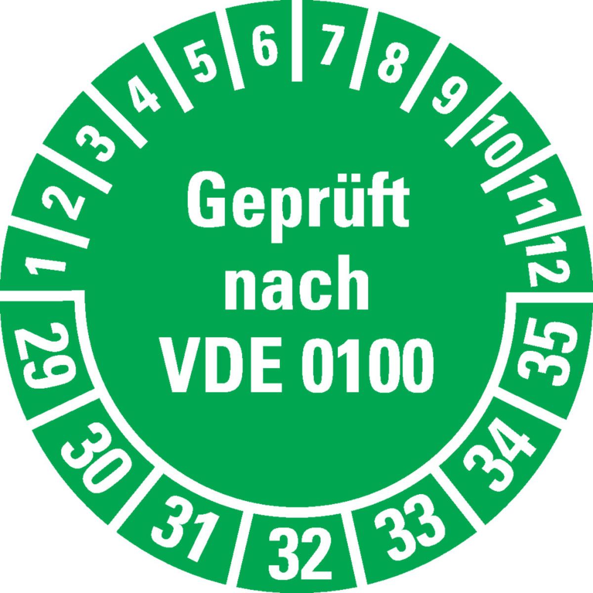 KSIGN Mehrjahresprüfplakette Geprüft nach VDE 0100 Ø 30 mm Dokumentenfolie Bogen