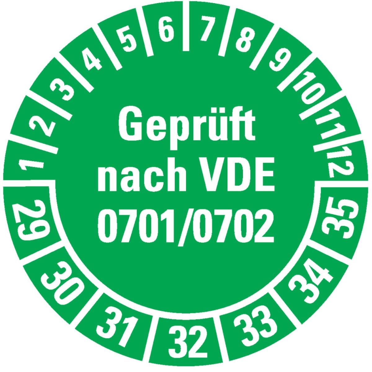 KSIGN Mehrjahresprüfplakette Geprüft nach VDE 0701/0702 Ø 30 mm Dokumentenfolie Bogen