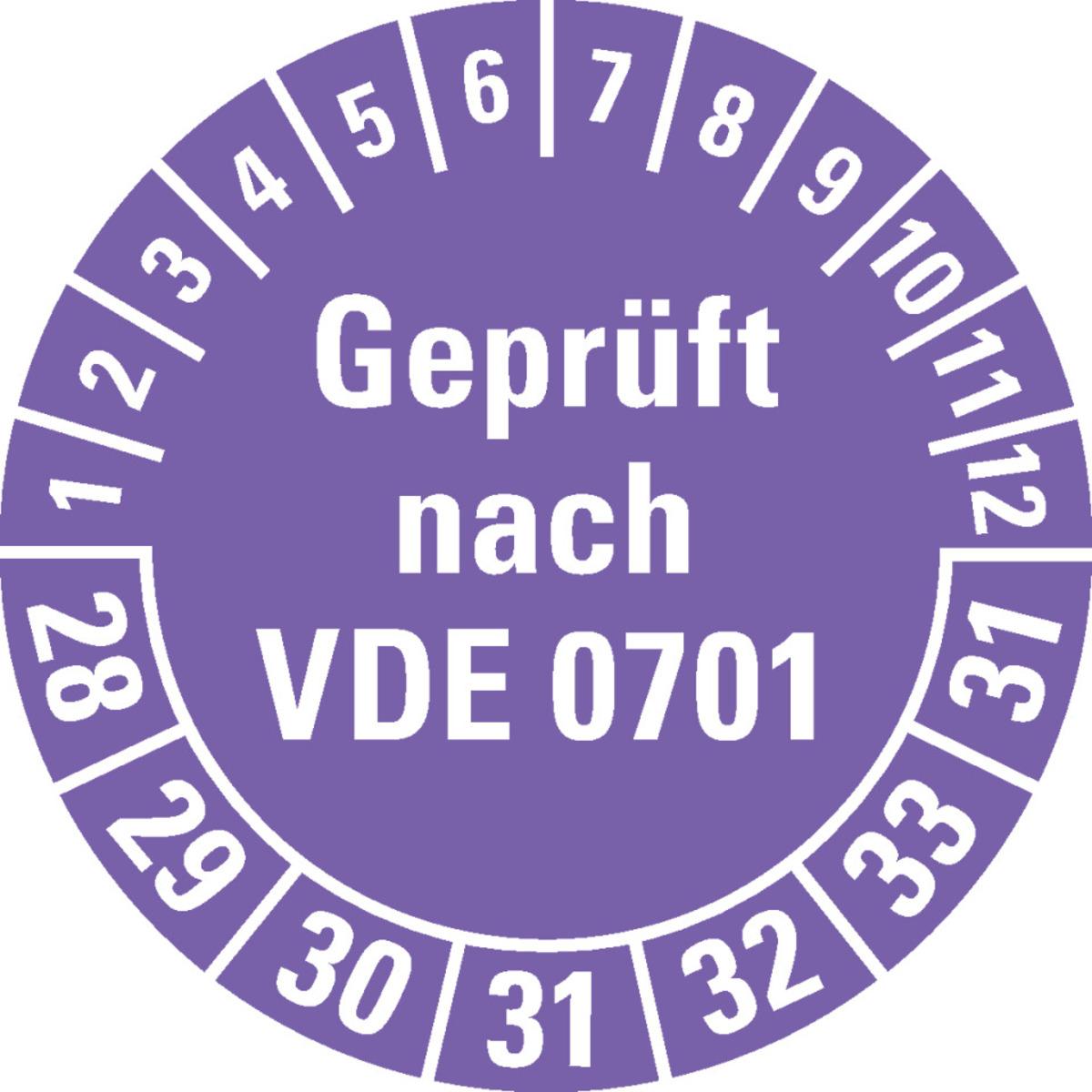 Auswahl: Prüfplakette geprüft nach VDE 0701, 25-31, braun, Dokumentenfolie, Ø 30mm, 500/Rolle