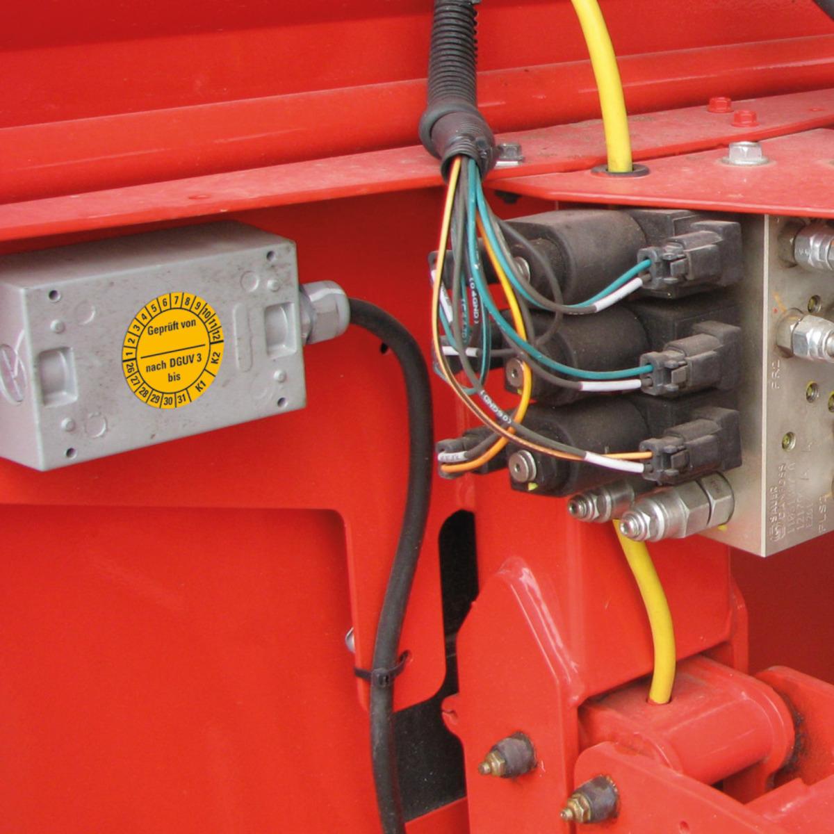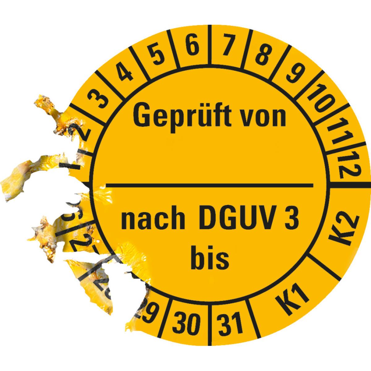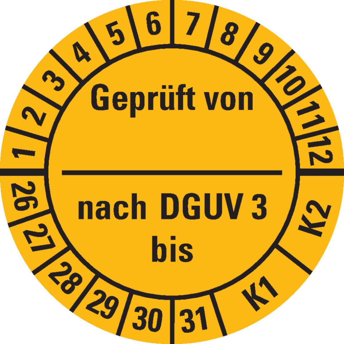 Auswahl: Prüfpl.Gepr.v.-n.DGUV Vorschrift 3 K1/K2, 26-31, gelb, Dokufolie, Ø 25mm, 500/RO