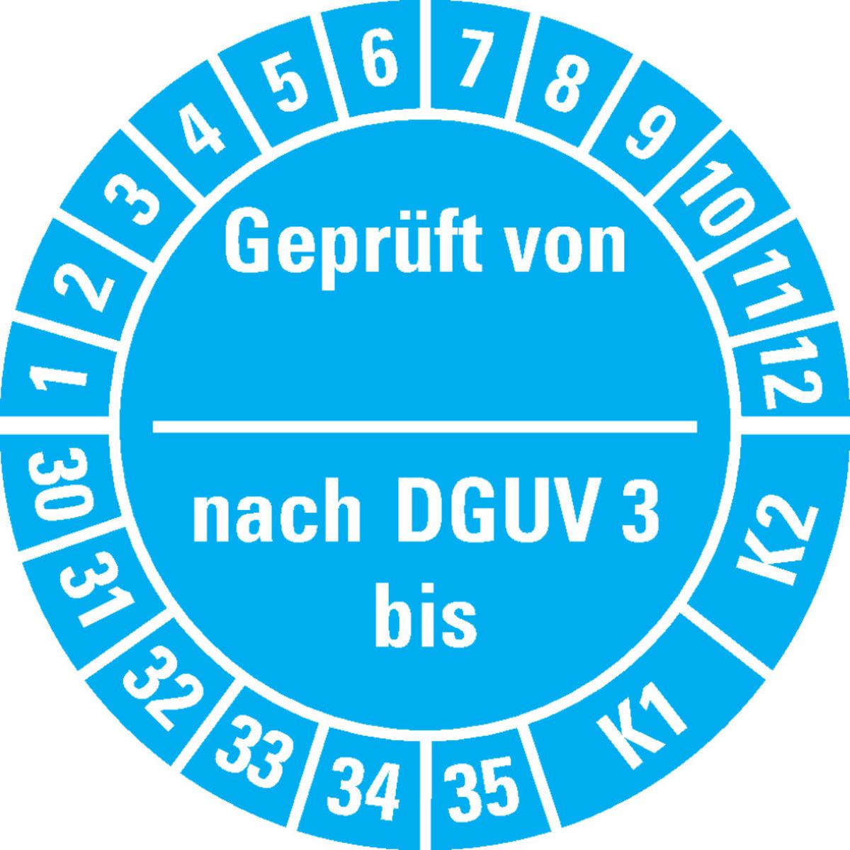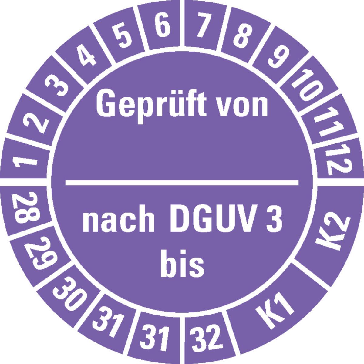 KSIGN Mehrjahresprüfplakette Geprüft von, nach DGUV 3 bis, K1, K2 Ø 25 mm Dokumentenfolie Rolle