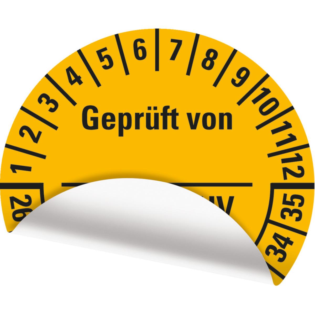 Auswahl: Prüfpl.Geprüft DGUV Vorschrift 3, 26-35, gelb, Folie, ablösbar, Ø 25mm, 500/Rolle