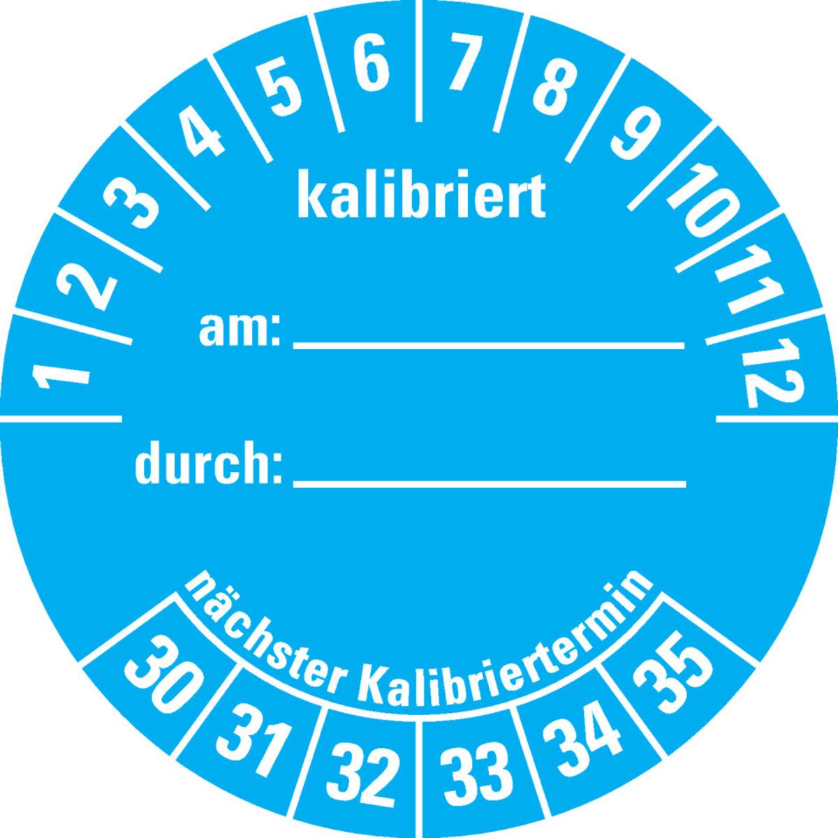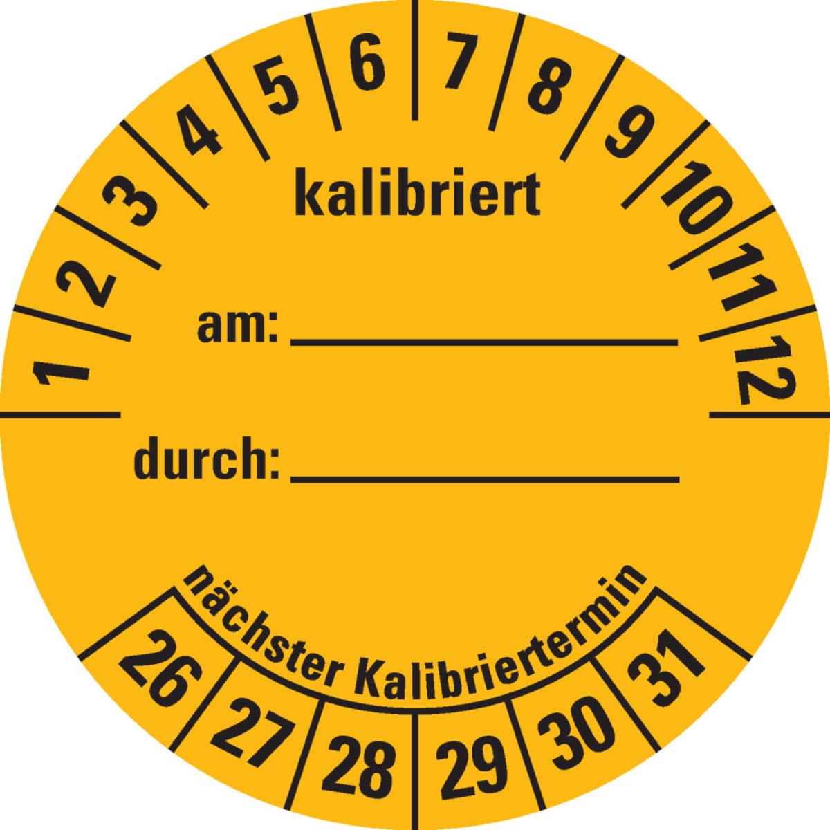 Mit der Mehrjahresprüfplakette "kalibriert - am: - durch:" behalten Sie Ihre Inspektionen fest im Blick und stellen die Einhaltung der Prüffristen sicher.