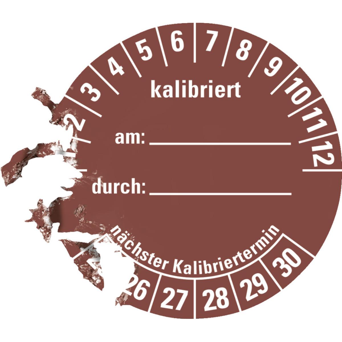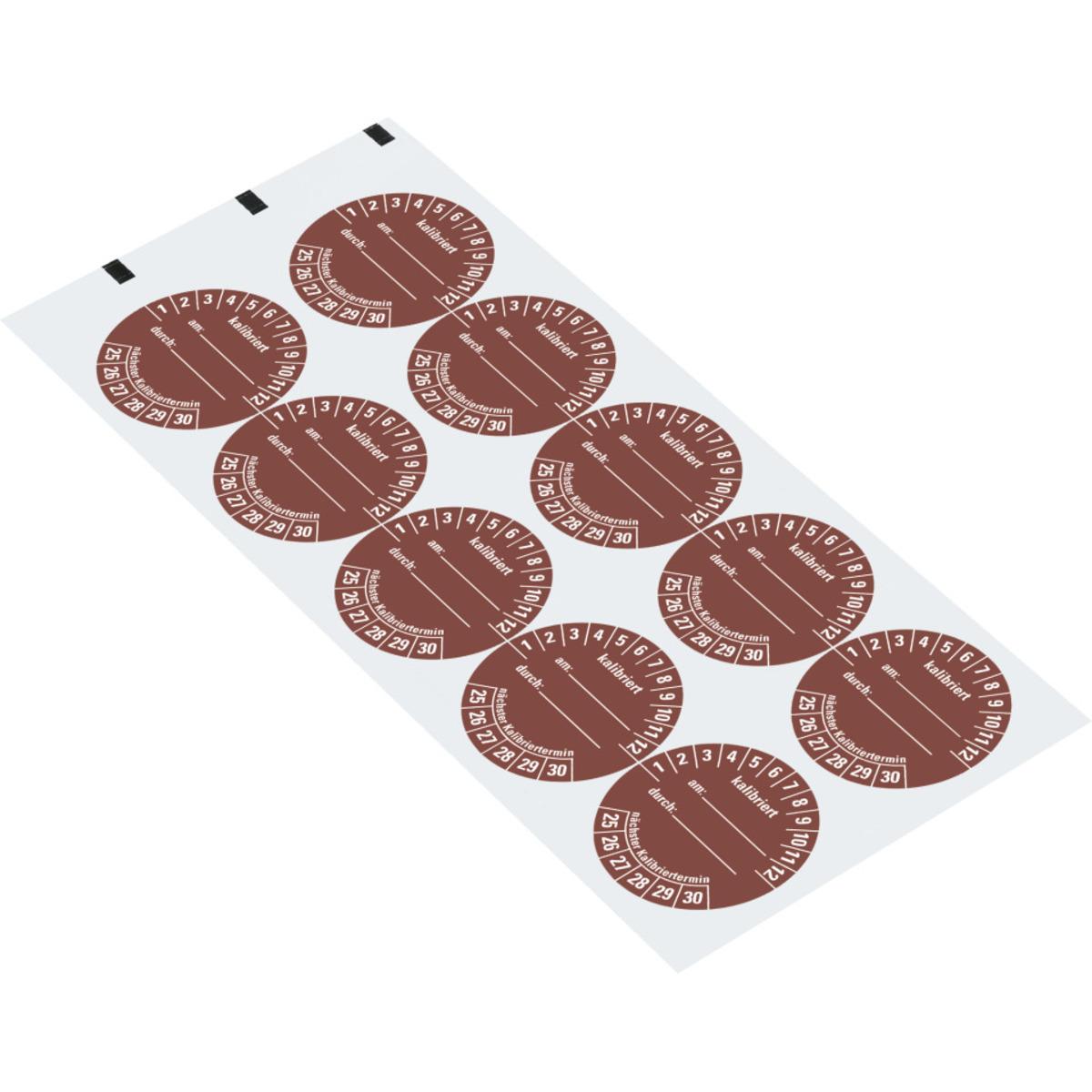 Auswahl: Prüfplakette kalibriert 25-30, braun, Dokumentenfolie, selbstkl., Ø 40mm, 10/Bogen