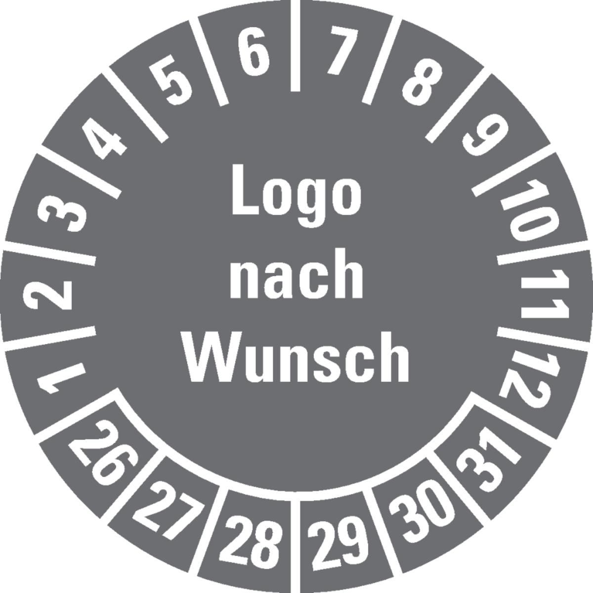 Mehrjahresprüfplakette nach Wunsch, mit Logo und Monatsring