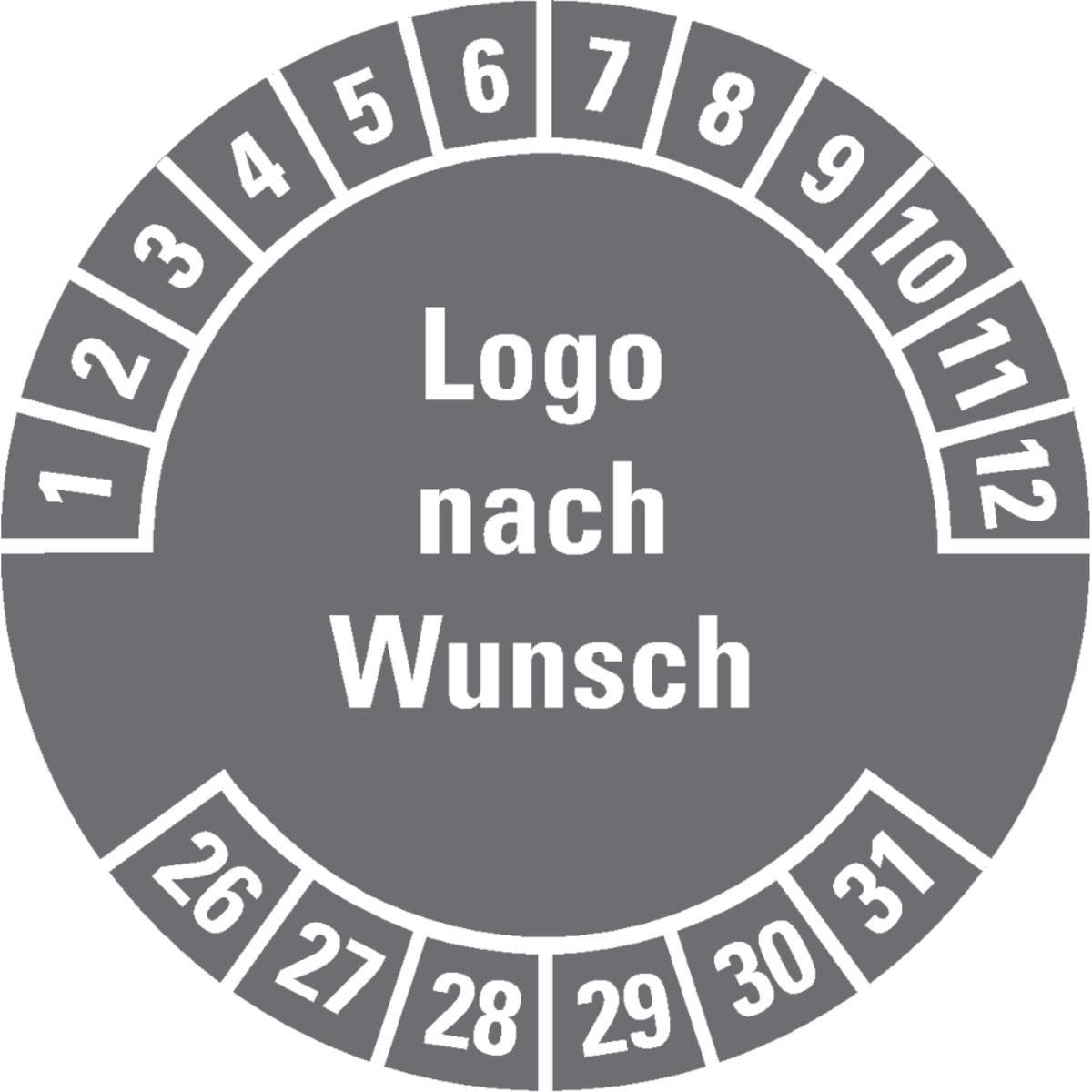 Mehrjahresprüfplakette nach Wunsch, mit Logo und Monatskranz