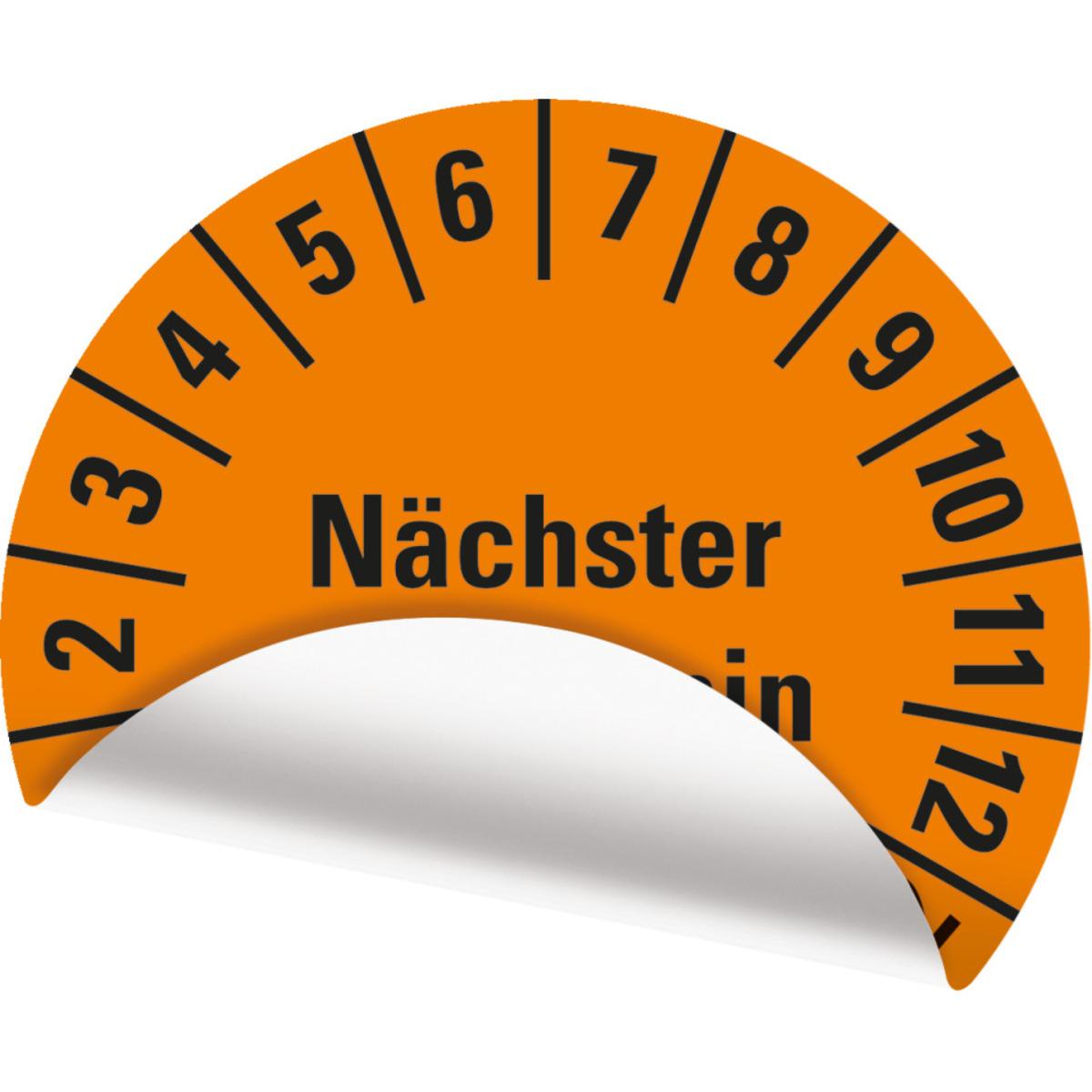 Mehrjahresprüfplakette "Nächster Prüftermin" zur Einhaltung von Prüffristen und Erleichterung der Terminkontrolle