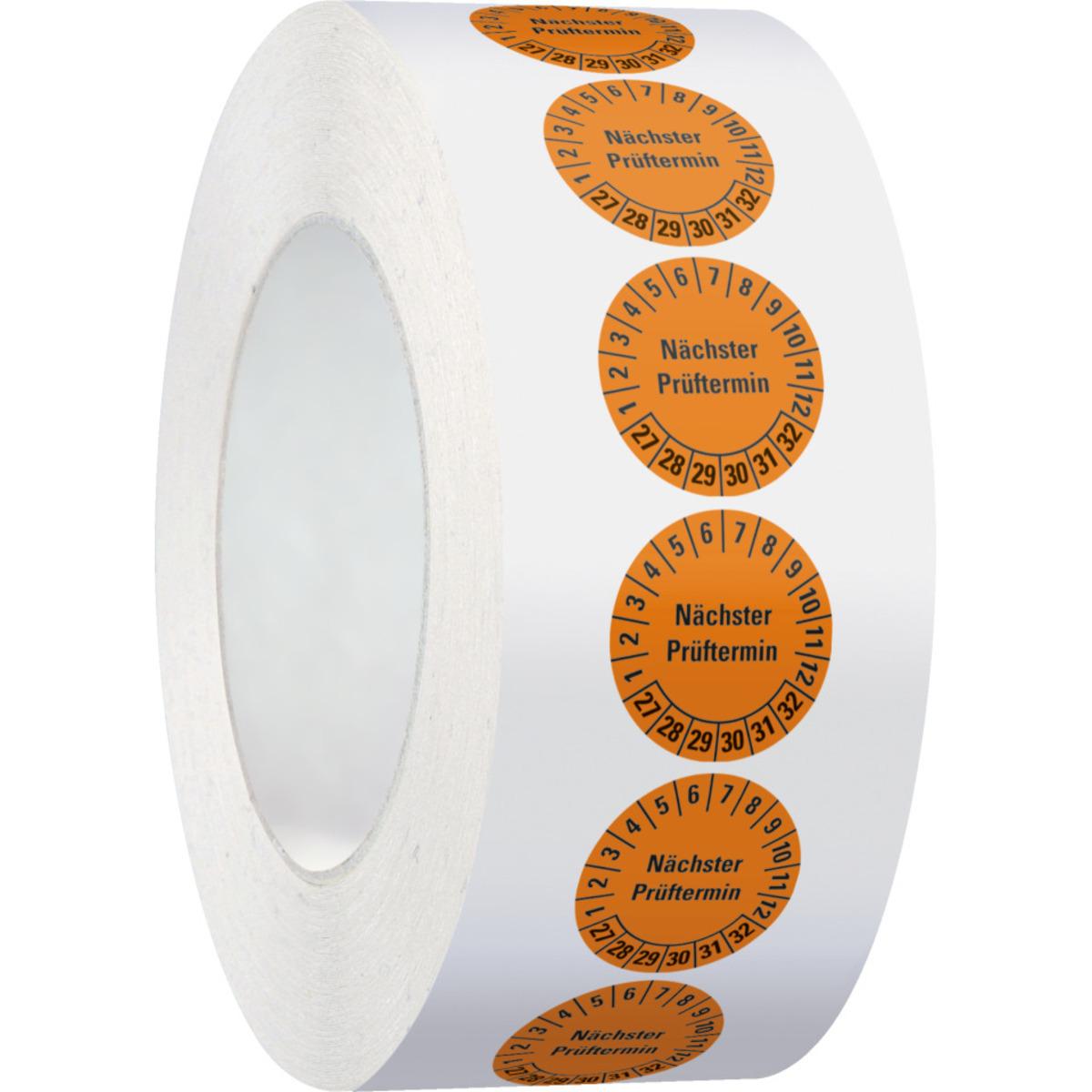 Auswahl: Prüfplakette Nächster Prüftermin, 27-32, orange, Folie, ablösb. Folie, 500/Rolle