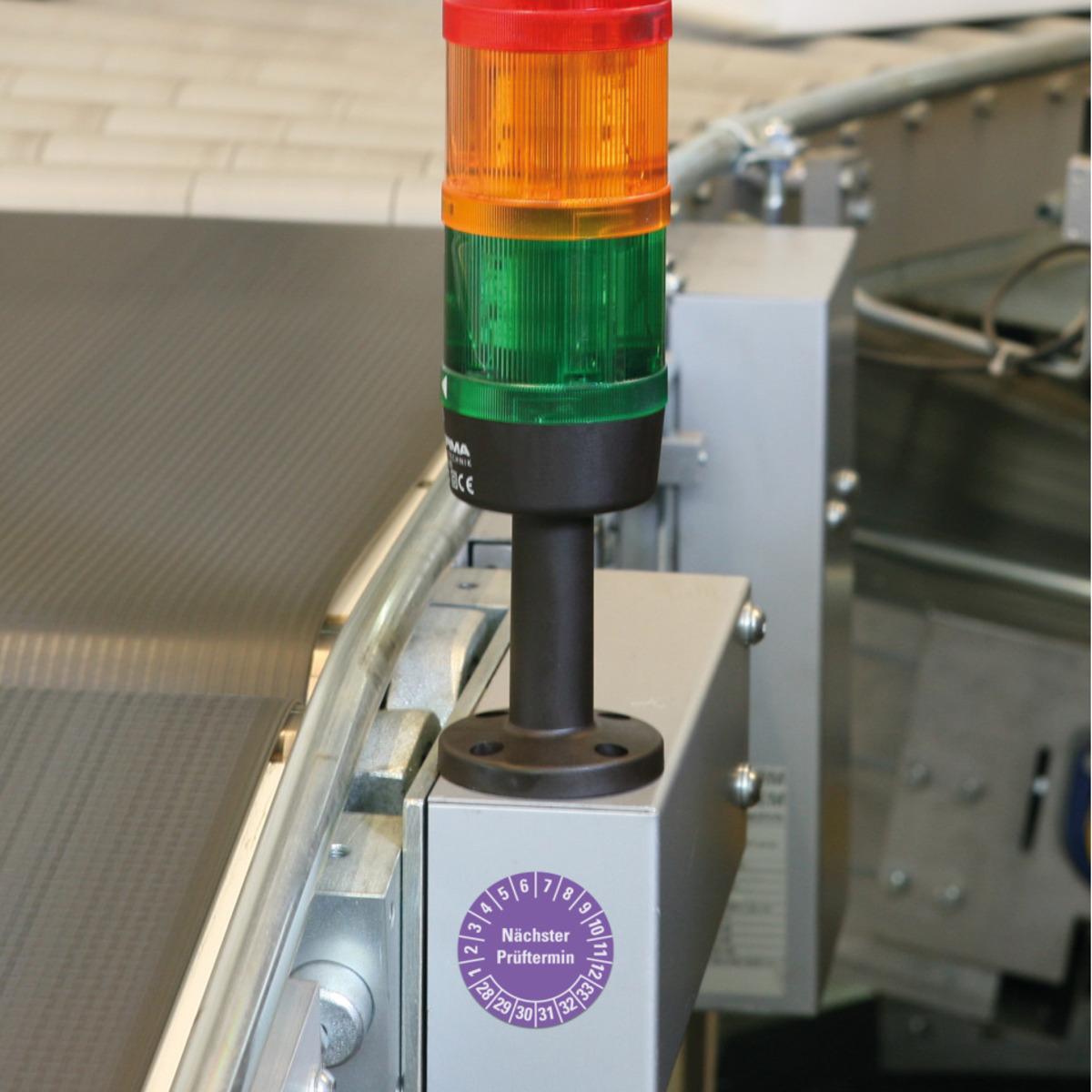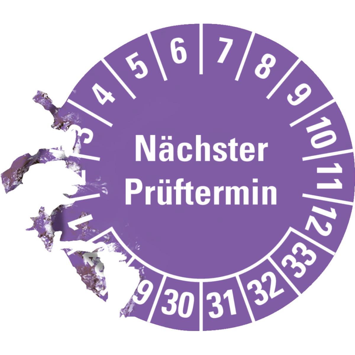 Auswahl: Prüfplakette Nächster Prüftermin 28-33, violett, Dokumentenfolie, Ø 20mm, 180/Heft