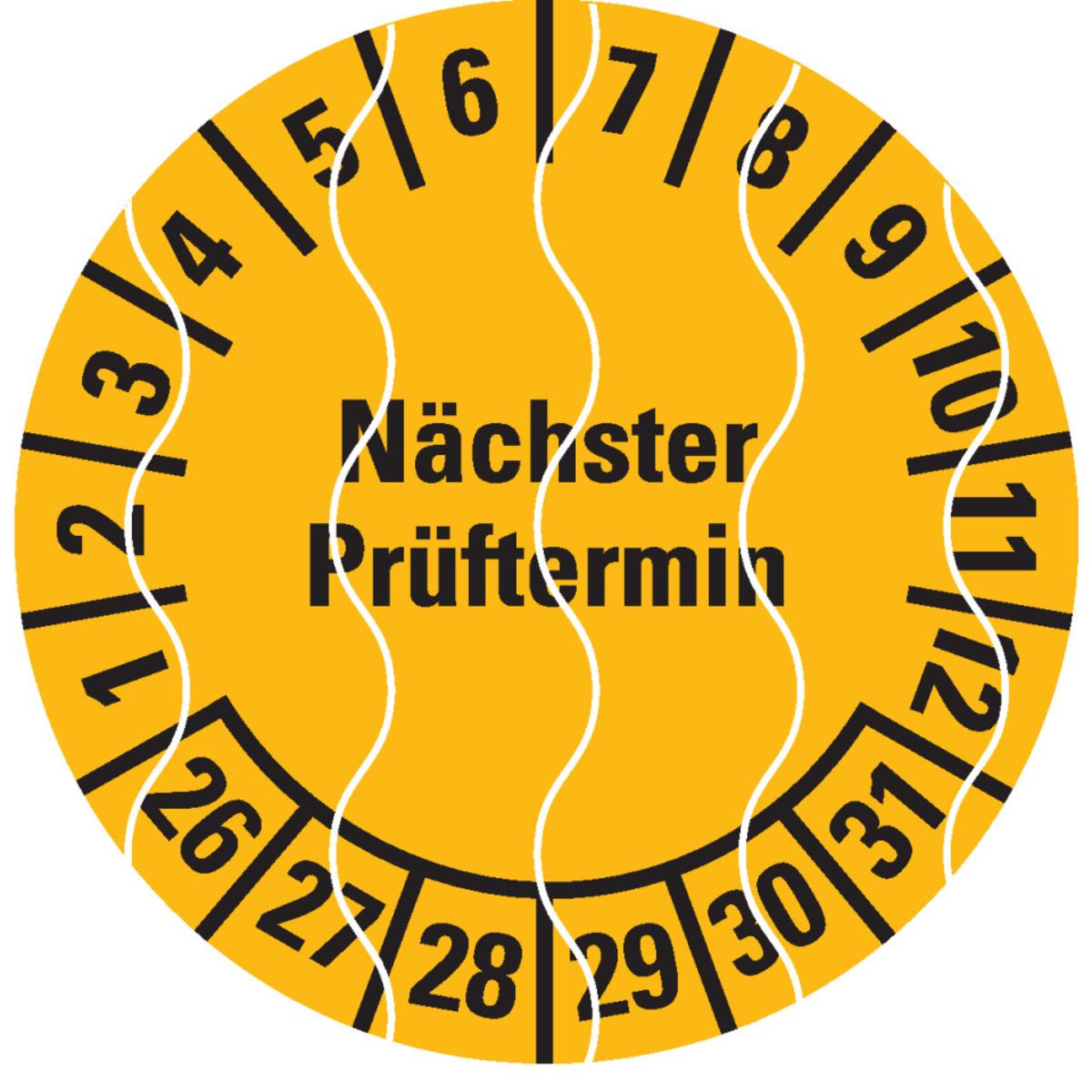 Auswahl: Prüfplakette Nächster Prüftermin 26-31, gelb, Sicherheitsfolie, Ø 20mm, 36/Bogen