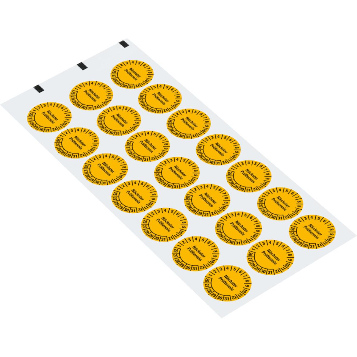 Auswahl: Prüfplakette Nächster Prüftermin 26-31, gelb, Dokumentenfolie, Ø 25mm, 21/Bogen