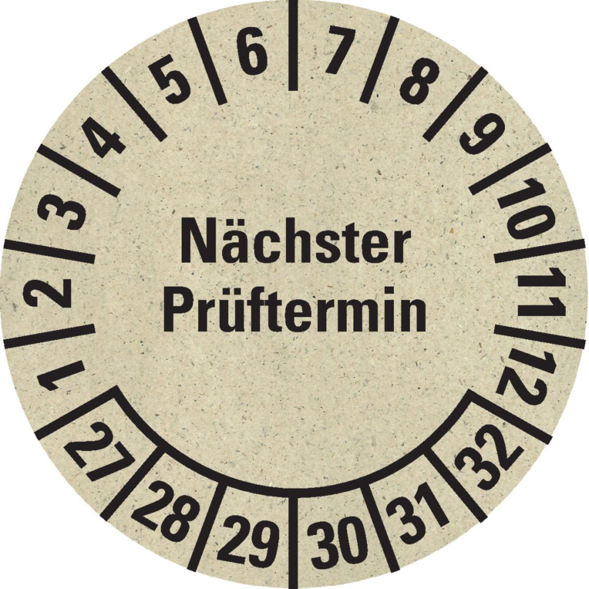 KSIGN Mehrjahresprüfplakette Nächster Prüftermin Ø 30 mm Primärfaser-Graspapier Bogen