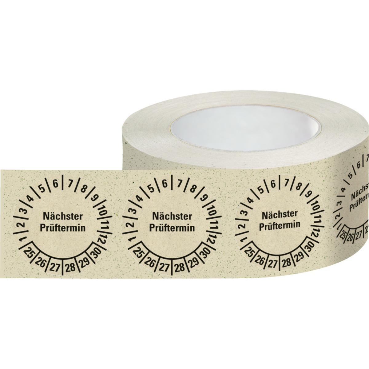 Auswahl: Prüfplakette Nächster Prüftermin 25-30, natur, Primärfaser-Graspapier, Ø30mm, 500/RO