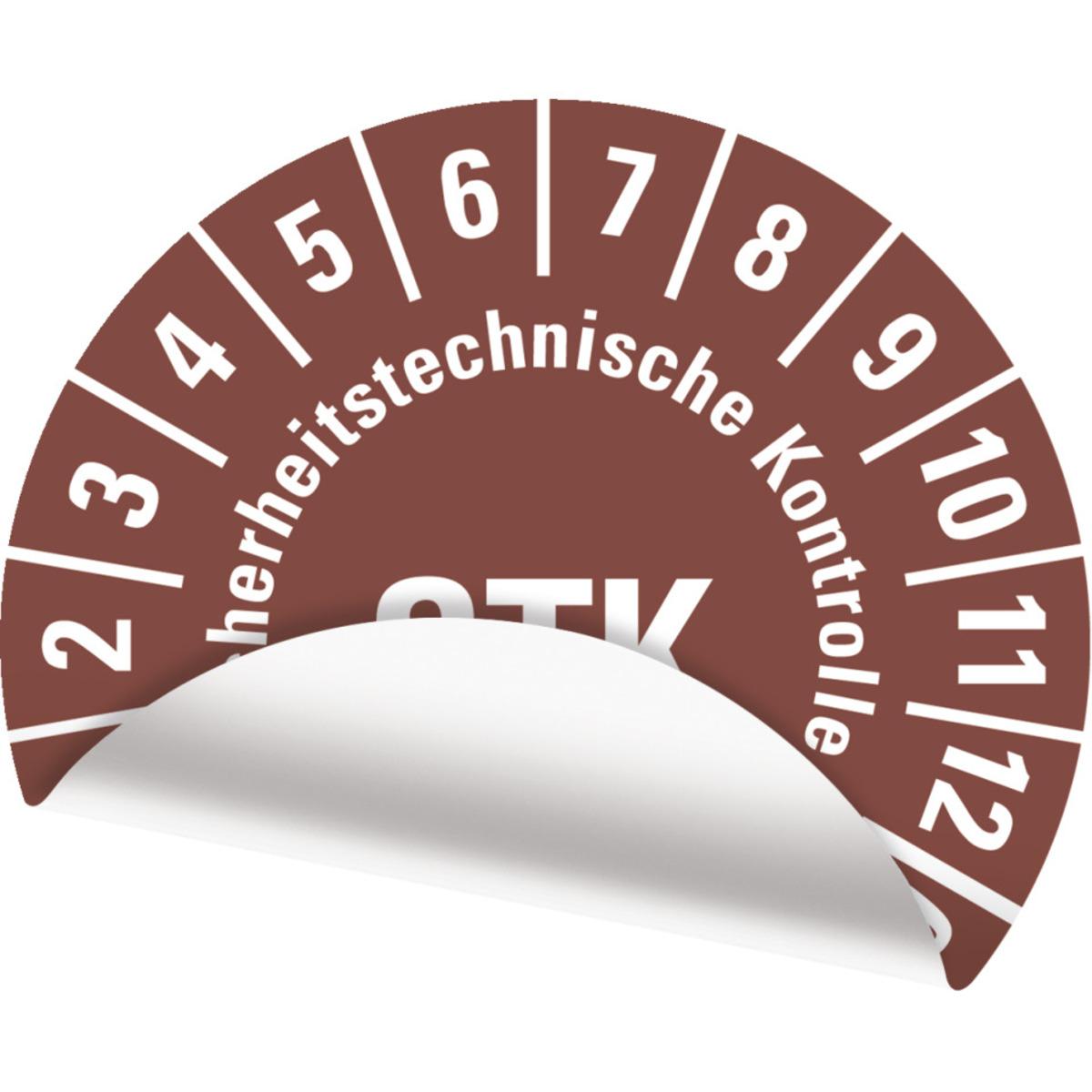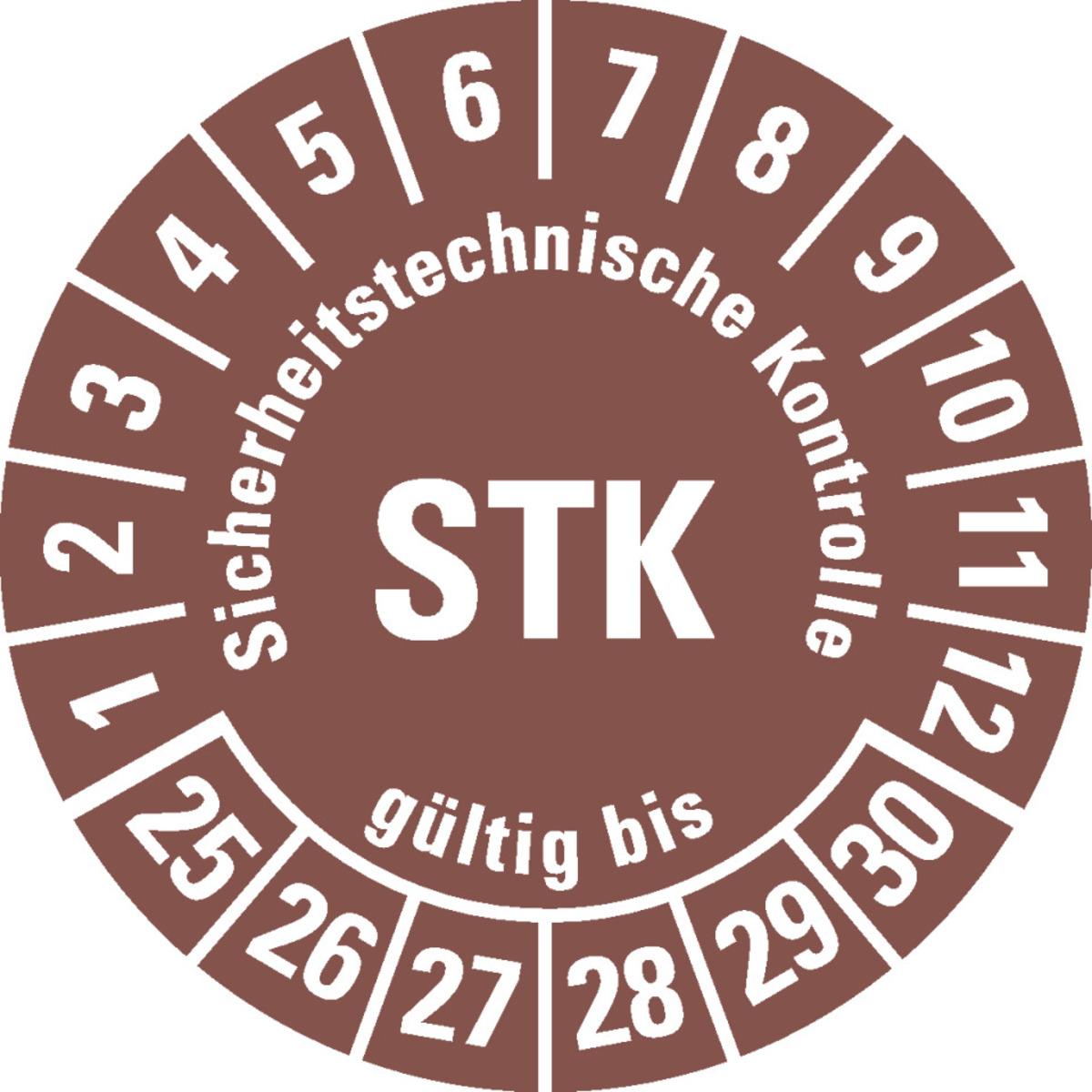 Auswahl: Prüfplakette STK 25-30, braun, Folie, m.Spezialkl.Oberflächenschutz, Ø30mm, 18/BOG