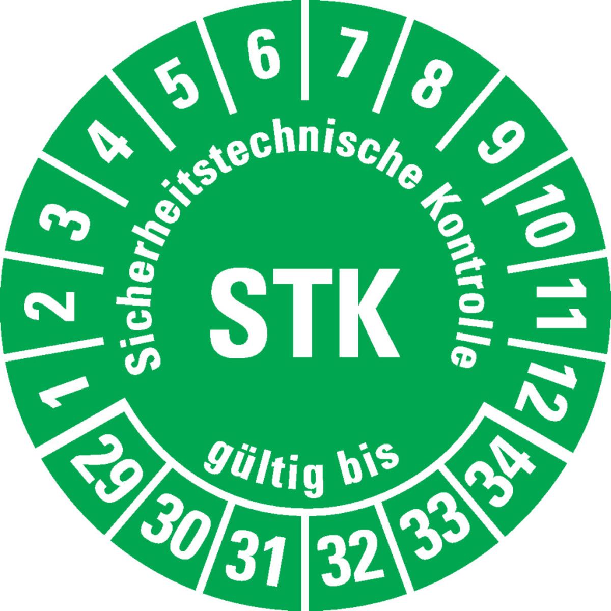 KSIGN Mehrjahresprüfplakette Sicherheitstechnische Kontrolle, STK, gültig bis Ø 30 mm Hochleistungsfolie Bogen