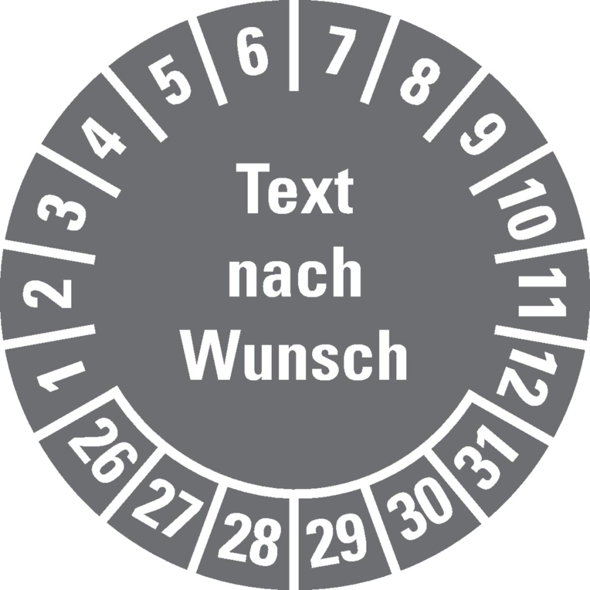 Mehrjahresprüfplakette nach Wunsch, mit Text und Monatsring