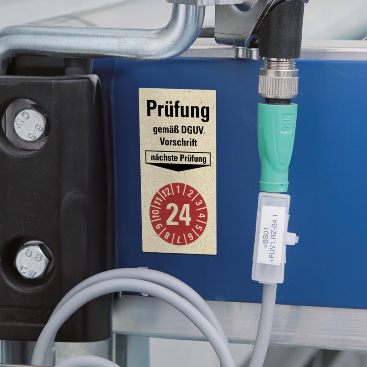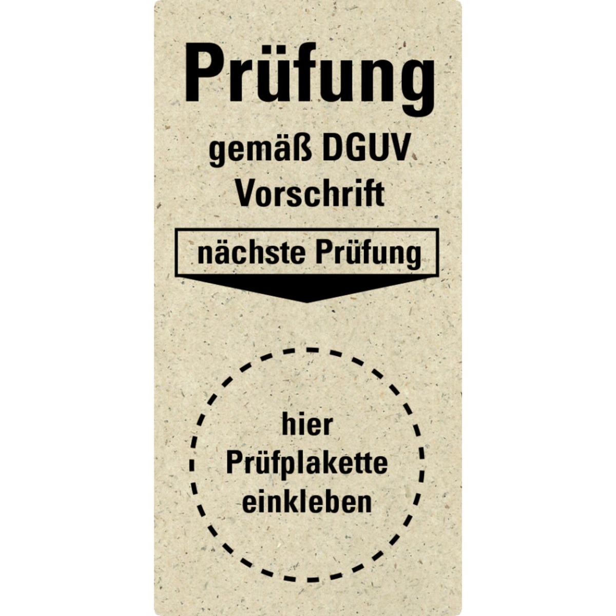 Auswahl: Mini-Grundplakette Prüfung DGUV Vor., NP, Primärfaser-Graspapier, 20x40mm, 16/Bogen