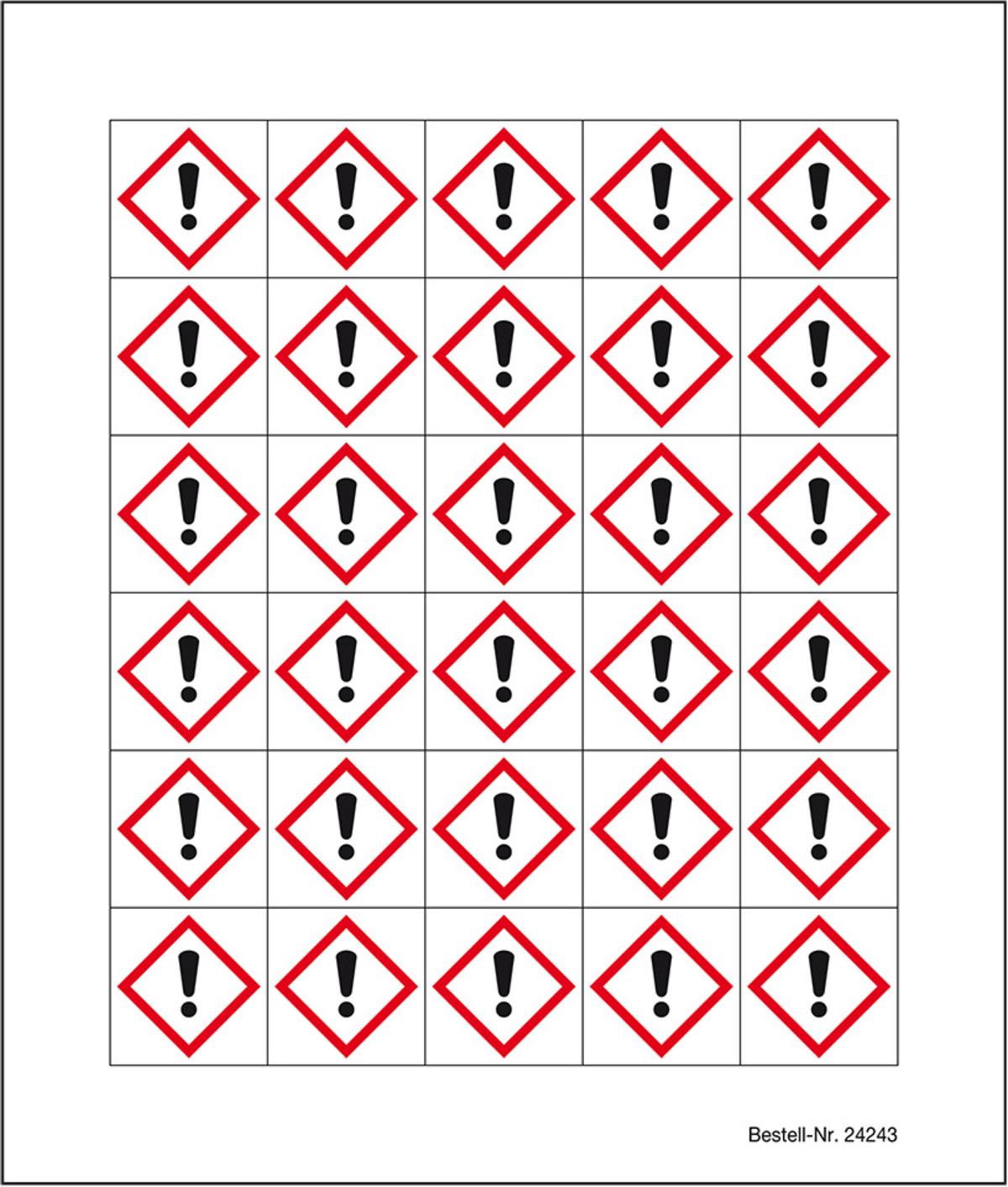 Auswahl: Minisymbol GHS 07 Gesundheitsgefährdend, Folie, selbstkl., 20x20mm, 30/Bogen