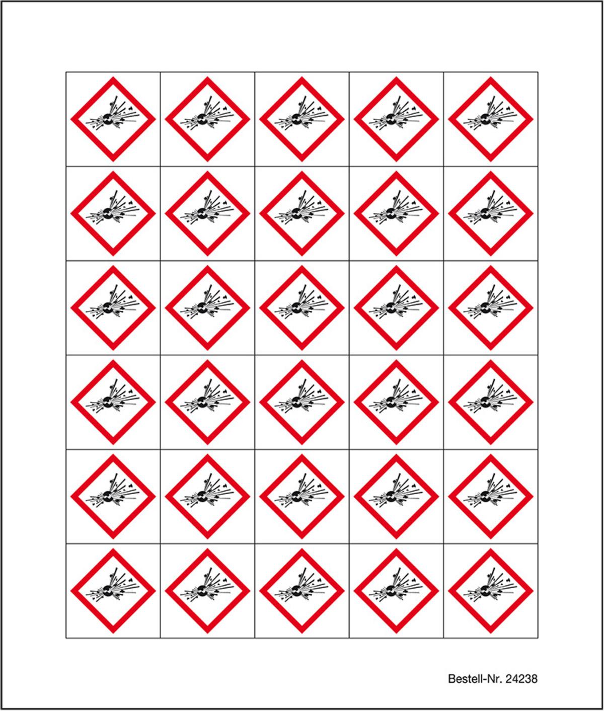 Auswahl: Minisymbol GHS 01 Explosive Stoffe, Polyesterfolie, selbstklebend, 20x20mm, 30/Bogen