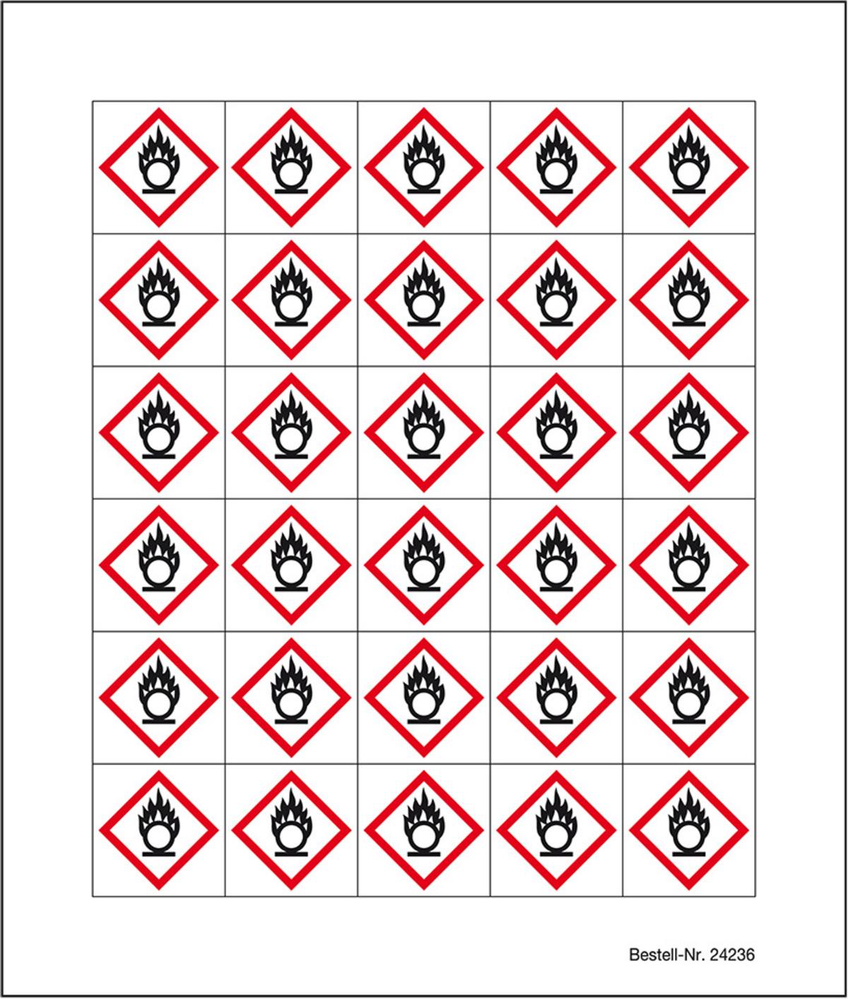 Auswahl: Minisymbol GHS 03 Entzündende Stoffe, Folie, selbstklebend, 20x20mm, 30/Bogen