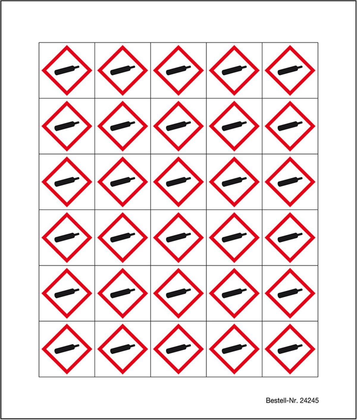 Auswahl: Minisymbol GHS 04 Unter Druck stehende Gase, Polyesterf., selbst., 20x20mm, 30/Bogen
