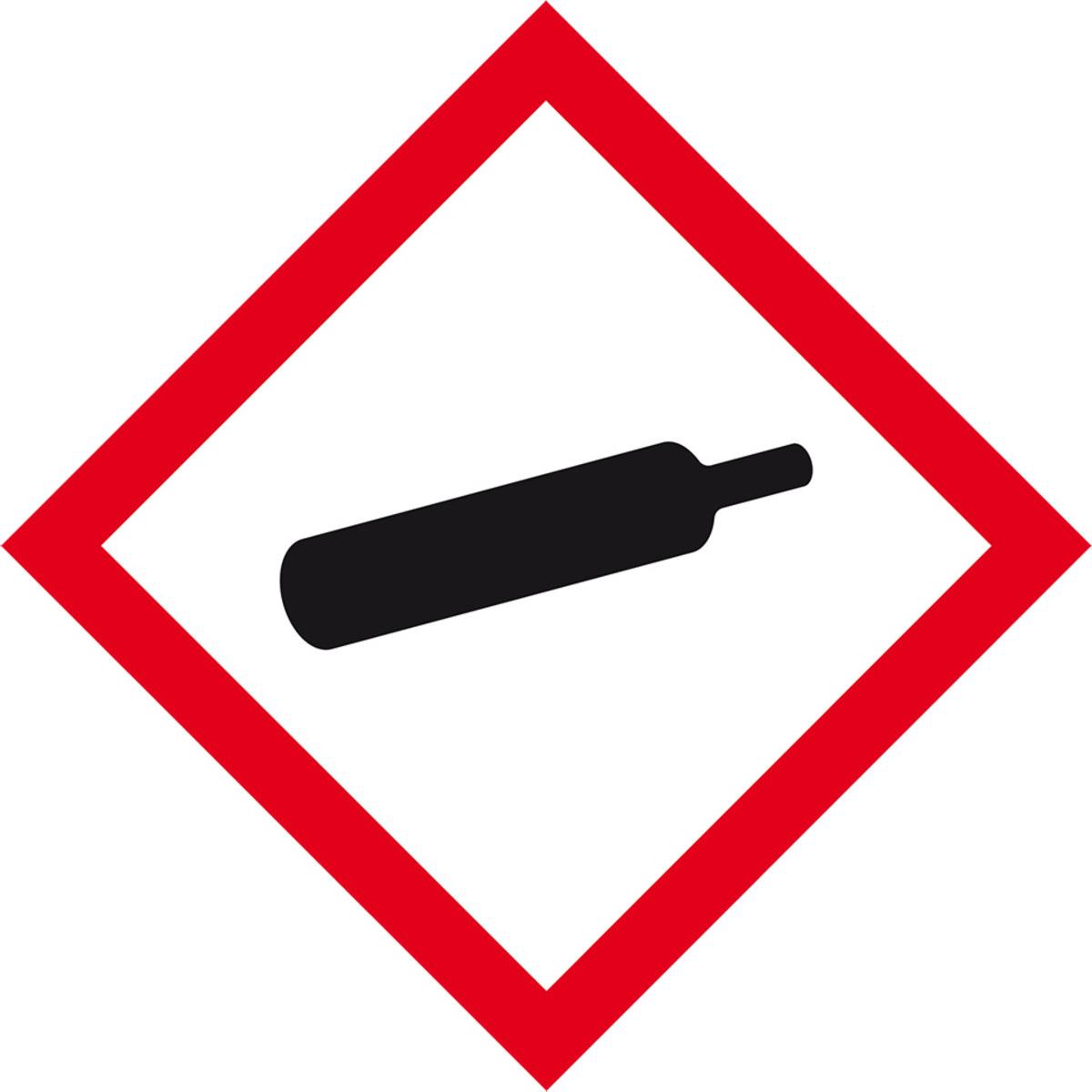 Minisymbole GHS 04 (Unter Druck stehende Gase) zur Beschriftung von Flucht- und Rettungsplänen und Betriebsanweisungen zur Kennzeichnung von Gefahrstoffbehältern und Rohrleitungen