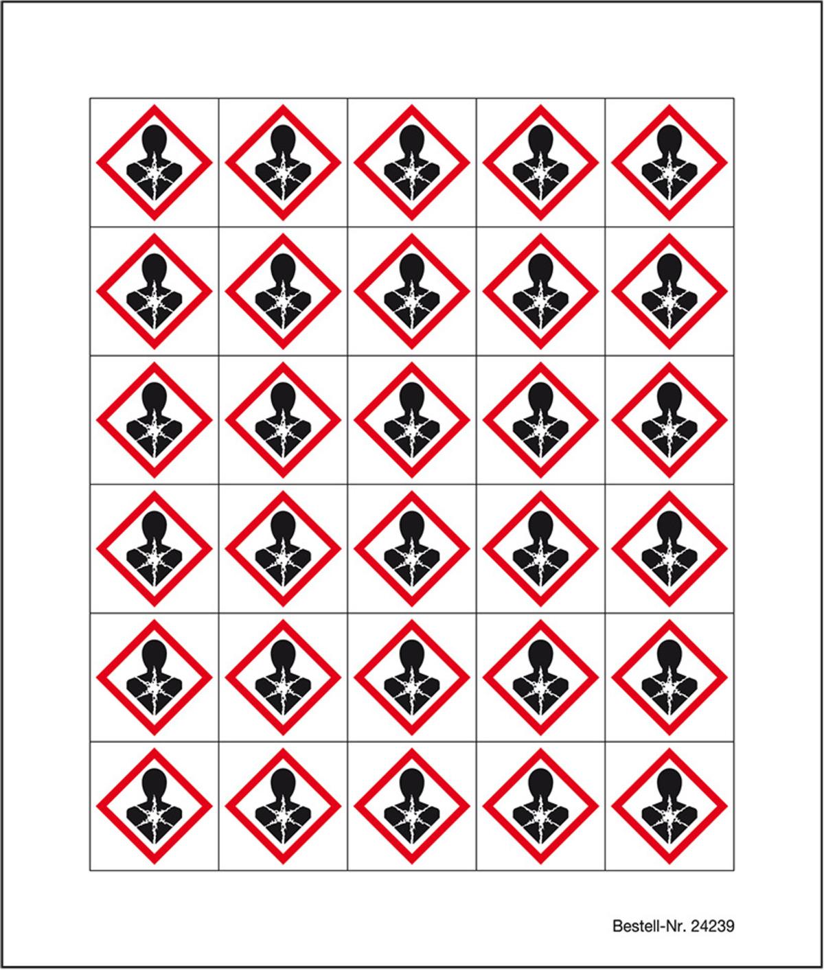 Auswahl: Minisymbol GHS 08 Gesundheitsgefahr, Folie, selbstklebend, 20x20mm, 30/Bogen