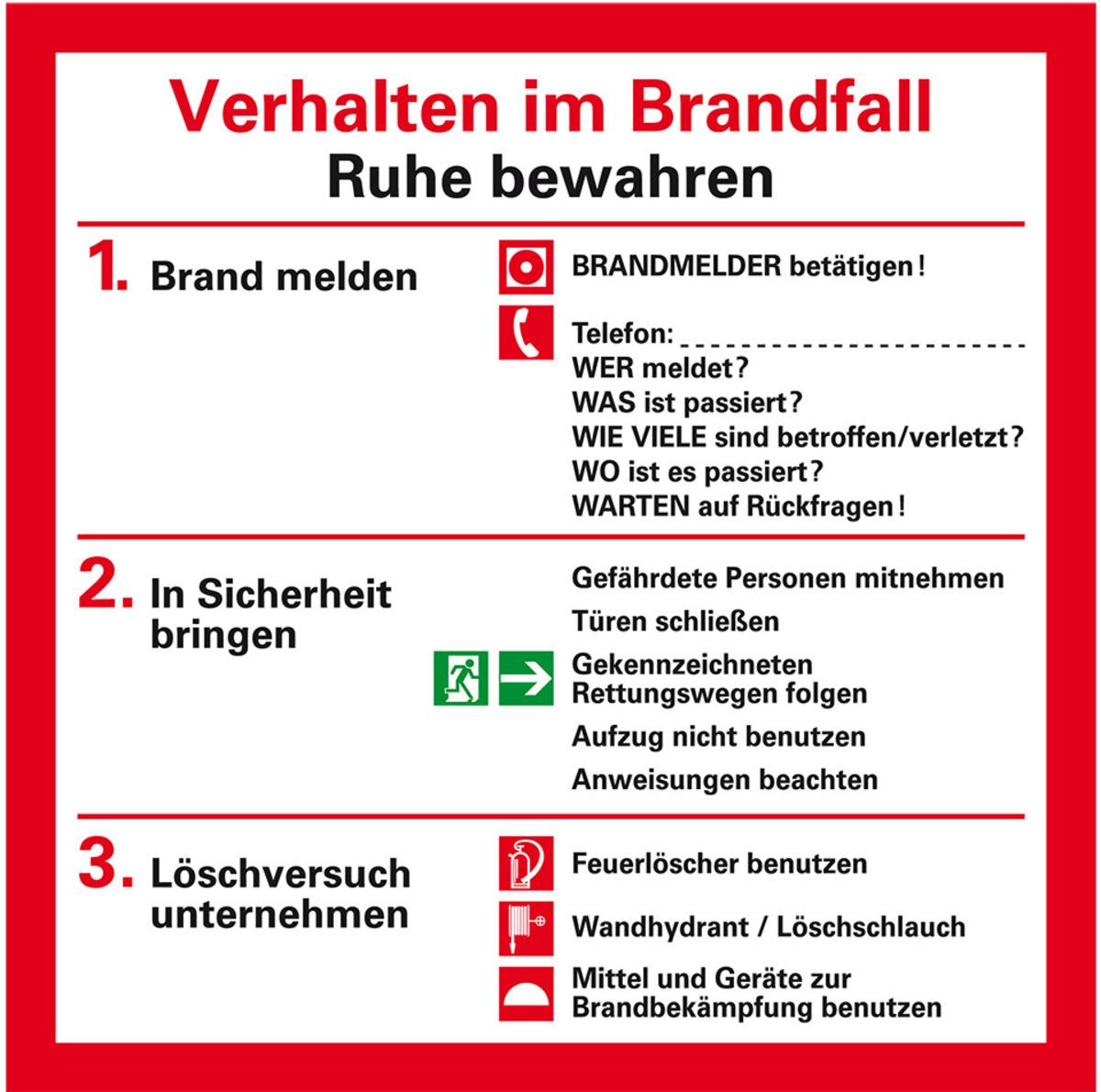 Notfallplan, welcher über das Verhalten im Brandfall aufklärt.