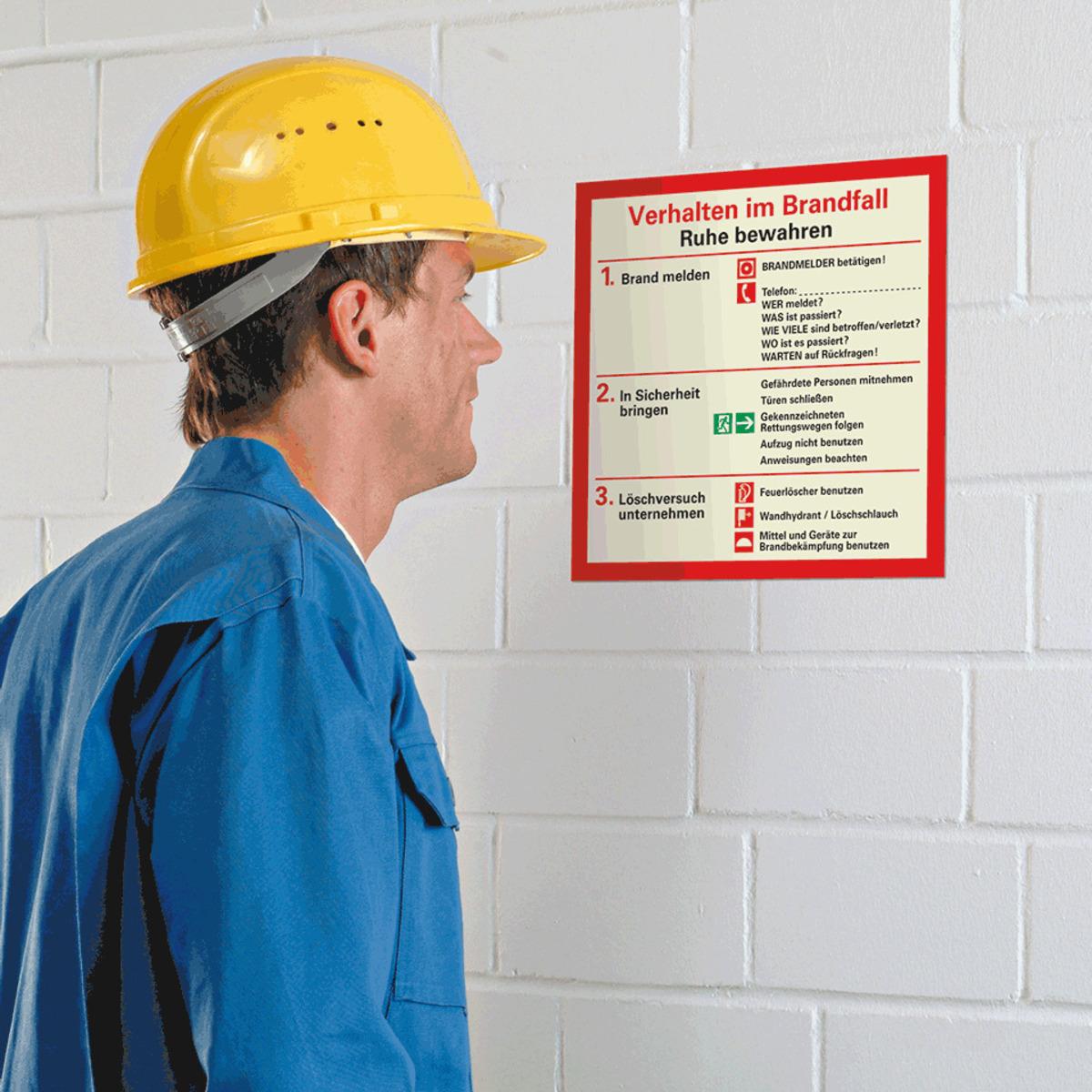 Auswahl: Notfallplan Verhalten im Brandfall, Folie, selbstklebend, 200x200 mm