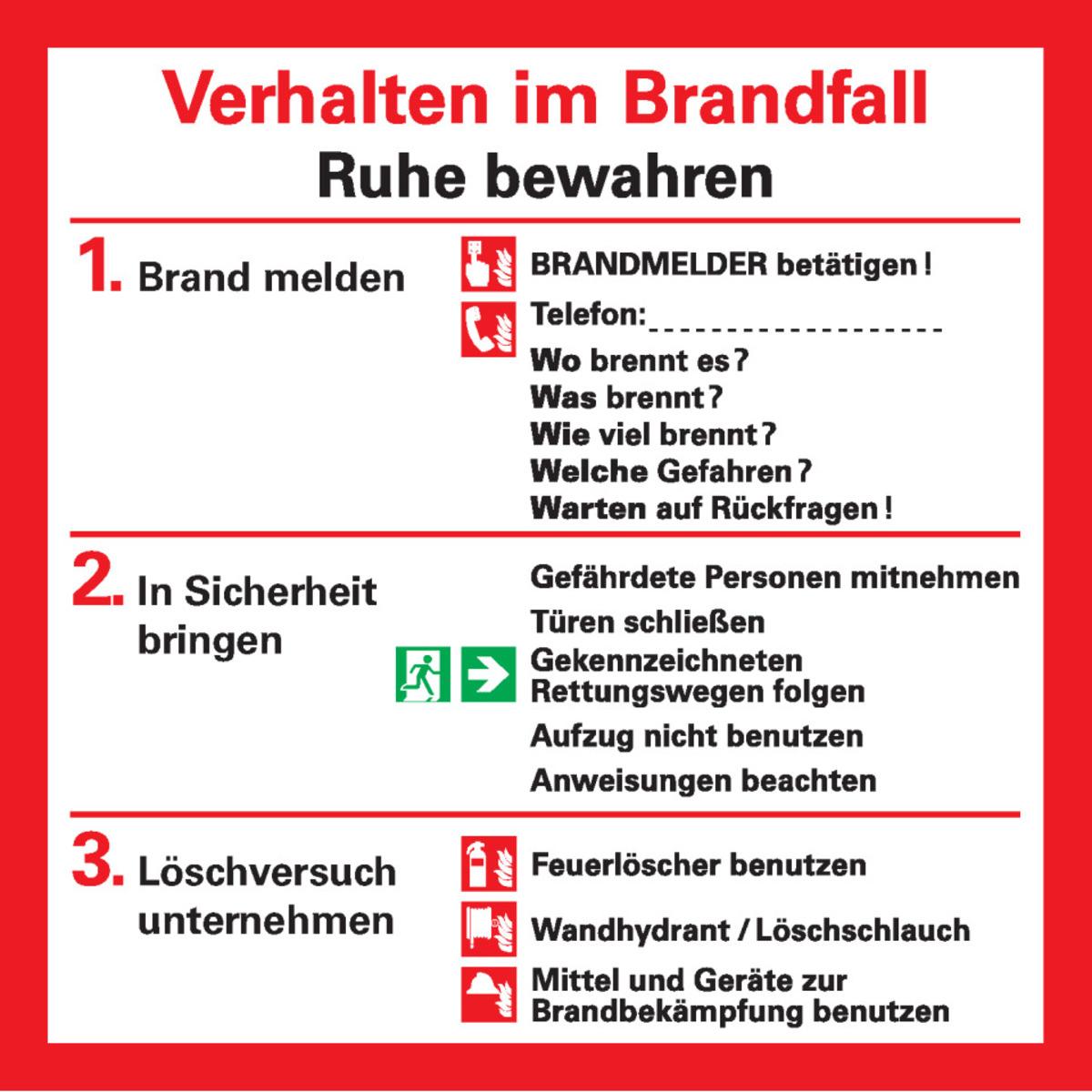 Notfallplan für das ordnungsgemäße Verhalten im Brandfall.