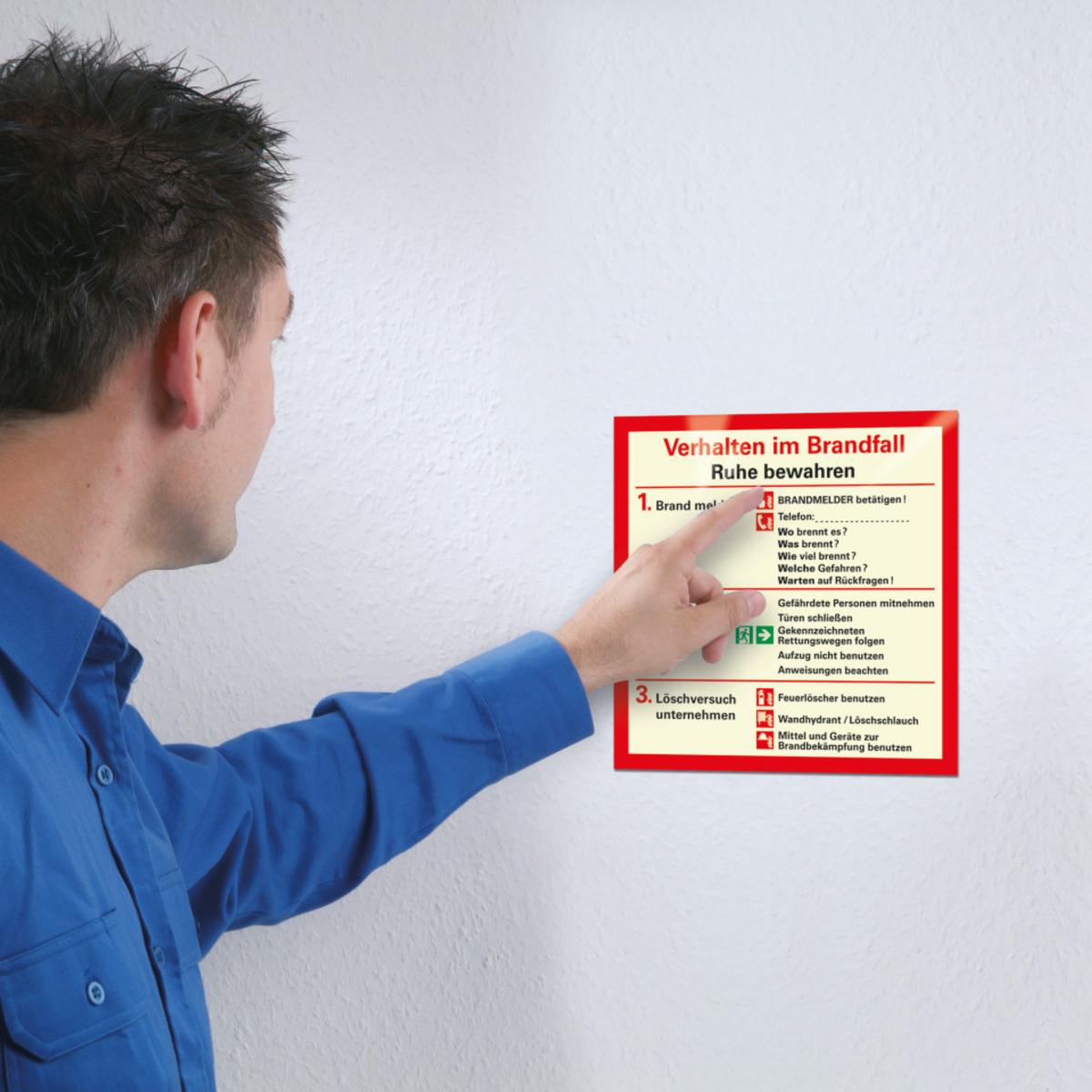 Auswahl: Notfallplan Verhalten im Brandfall, Folie, selbstklebend, 200x200mm