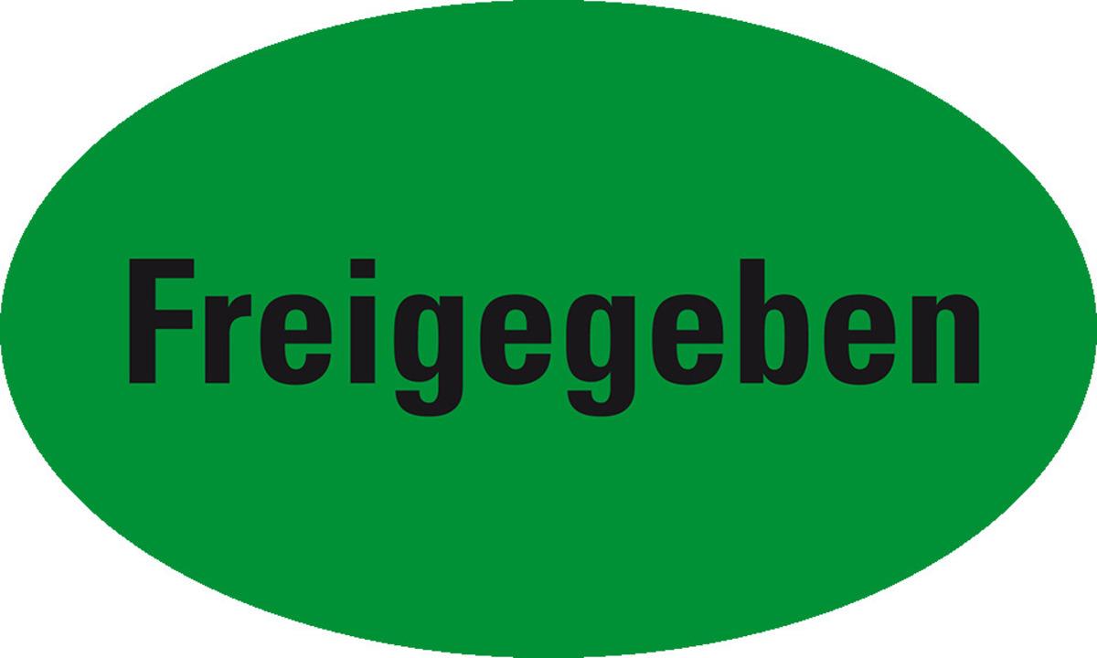 Auswahl: Organisationsetikett Freigegeben, oval, grün, Haftpapier, ablösbar, 50x30mm, 500/Rolle