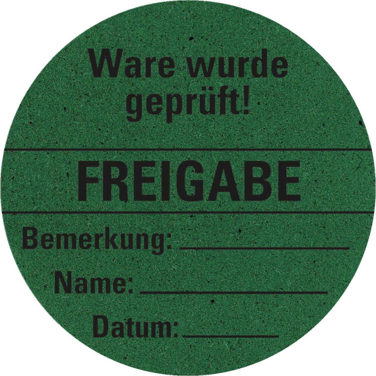 Auswahl: Organisationsetikett Freigabe, grün, Primärfaser-Graspapier, Ø 60mm, 6/Bogen