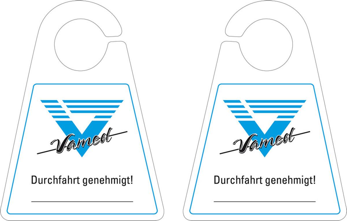 Auswahl: Parkausweis, mit Logo nach Wunsch. oben/Text nach Wunsch. unten, Kunststoff, 120x165mm